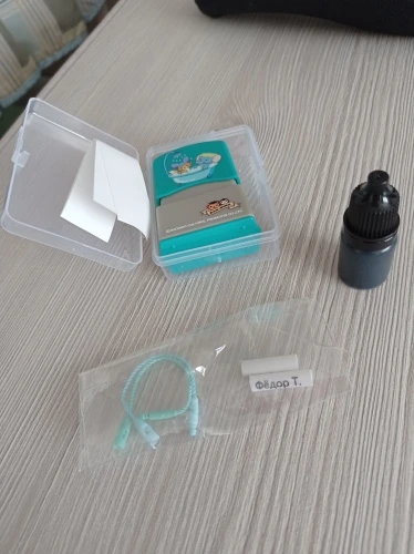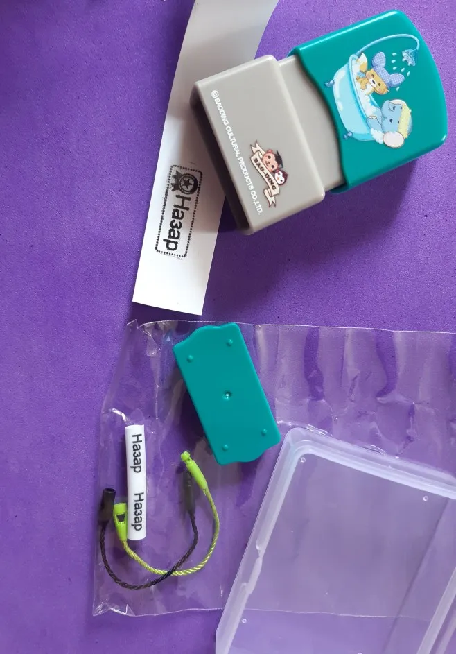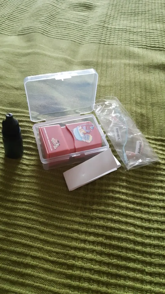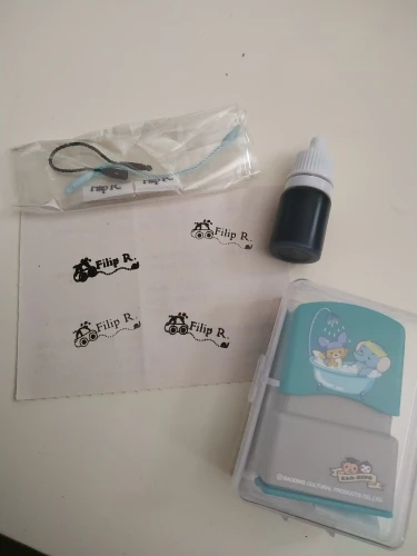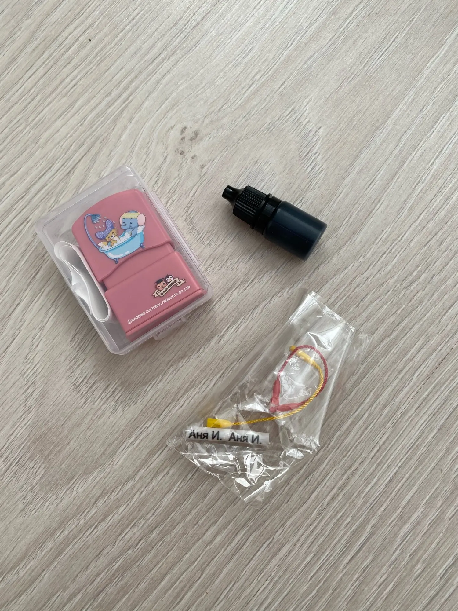Продавец очень ответственный 10 раз спросил какой я шрифт хочу и картинку, но я выбрала без картинки потому что так шрифт крупнее. Отличный штамп, проштамповала всё что только можно))) заказала комплект, штамп, чернила, и на обувь специальные застежки с именем))) всем советую к покупке!