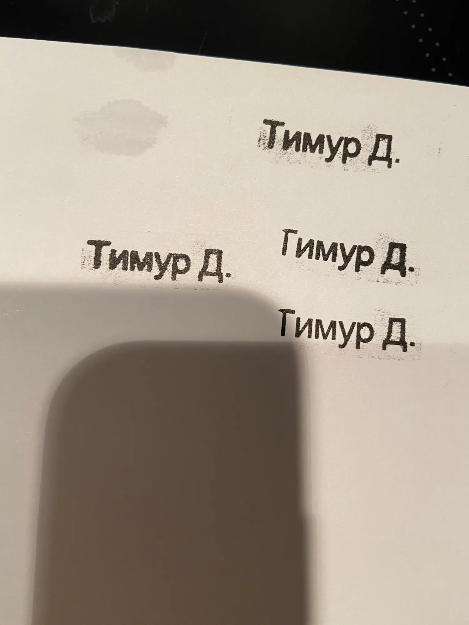 Качество печати хорошее, надпись чёткая. Но при слабом нажиме плохо пропечатываются точки у буквы ё.
