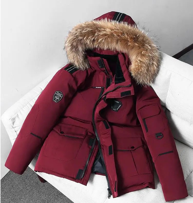 Парка мужская зимняя на утином пуху, с капюшоном, до-30 градусов, с меховым воротником