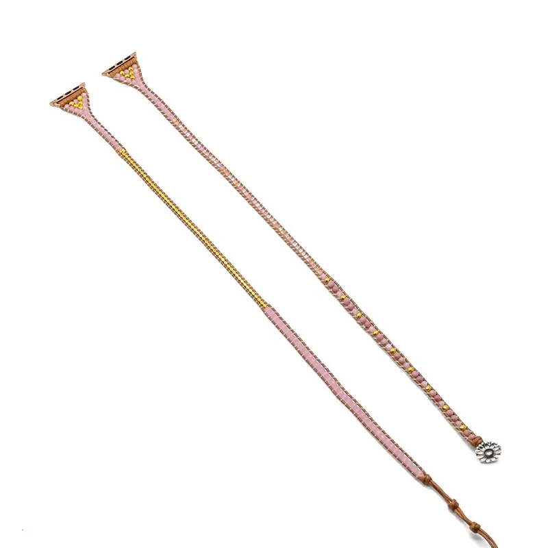 Натуральный камень в богемном стиле розового кварца Apple Watch кожаный браслет с ремешком 5 обертывание ремешок для наручных часов для подарков ювелирные изделия дропшиппинг