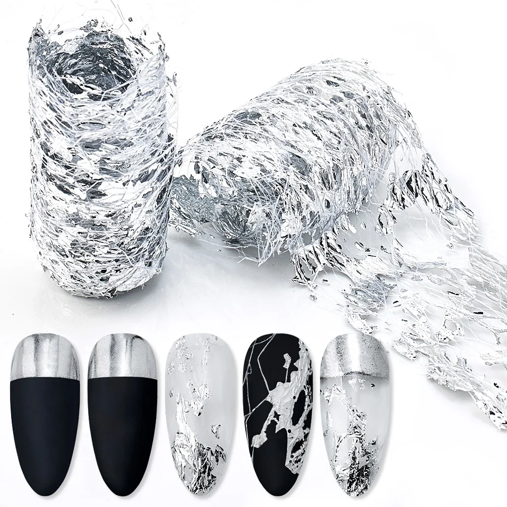 3D сетчатая наклейка для ногтей, 1 шт., золотая, серебряная сетчатая лента для ногтей, Голографическая клейкая шелковая фольга, декоративные наклейки для ногтей