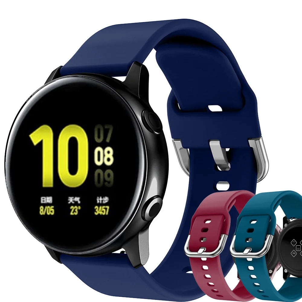 Ремешок для часов Active2 20 мм, силиконовый браслет для Samsung Galaxy Watch Active 2 40 мм 44 мм (с серебристой пряжкой)