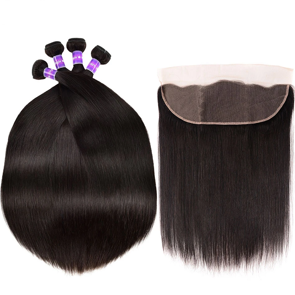 Прямые волосы, 3 пряди с фронтальной сеткой 13 х4, пряди натуральных перуанских волос с предварительным выщипыванием, пряди с фронтальной