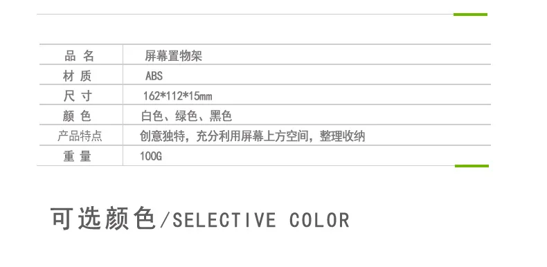 Цвет: белый/зеленый/черный Размер: 16,2 см x 11,2 см Материал: пластик Посылка включает: 1 x полка