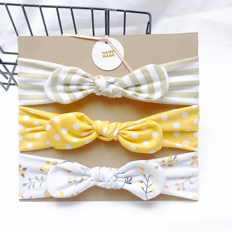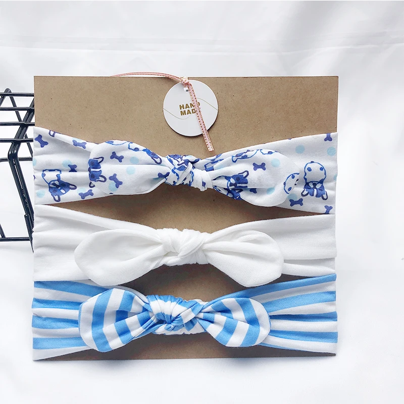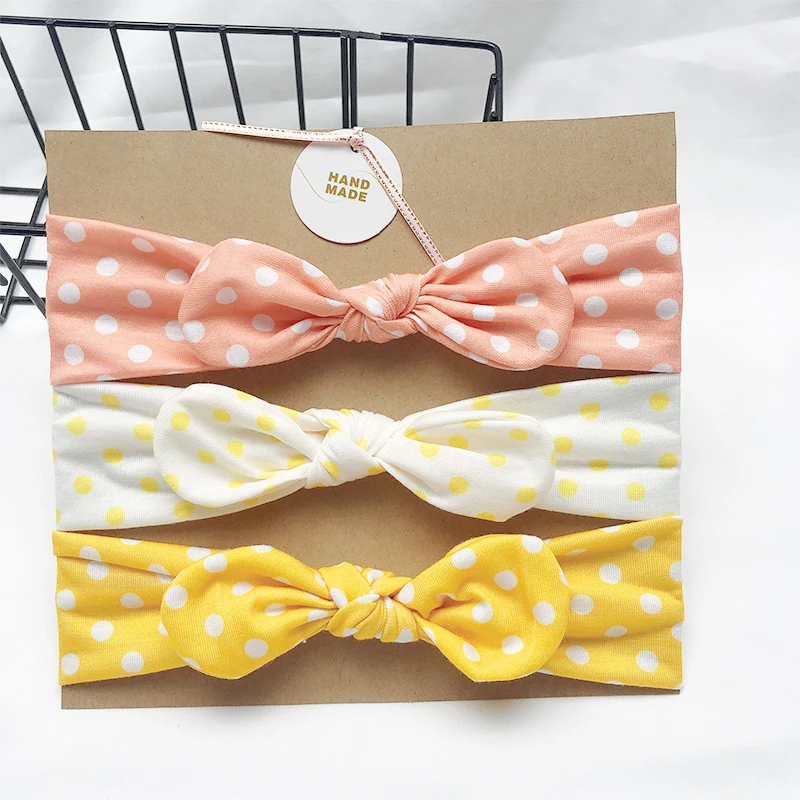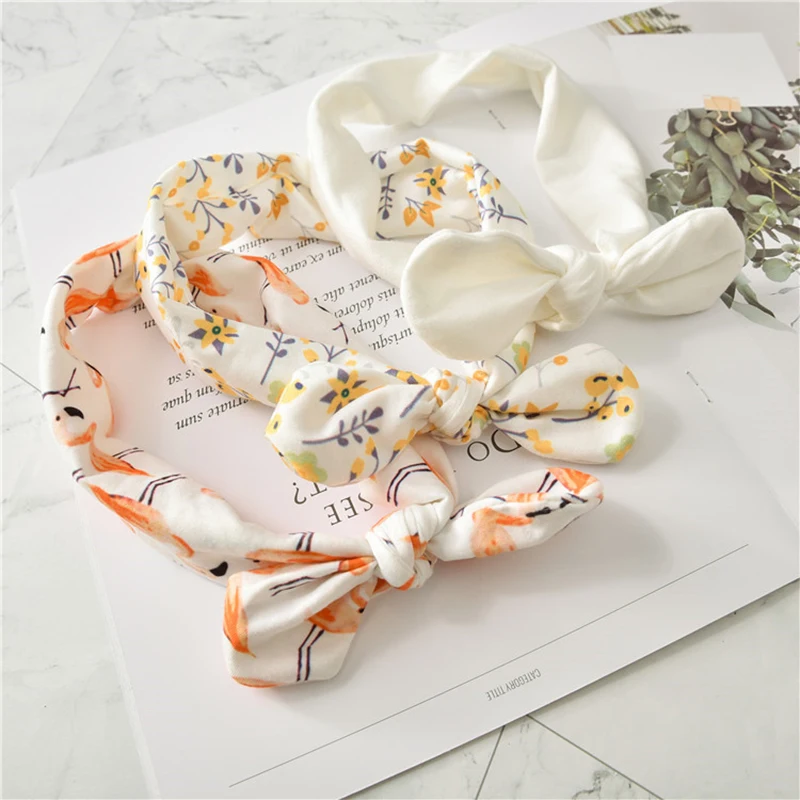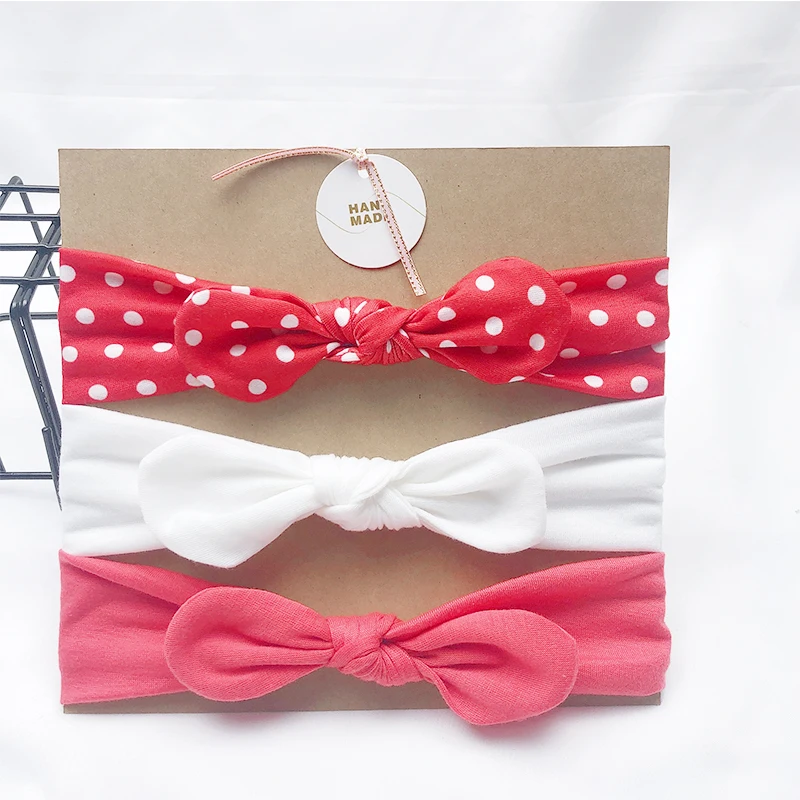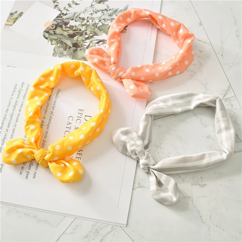 Однотонная повязка на голову с заячьими ушками для девочек, 3 шт.лот, мягкая эластичная вязаная повязка на голову, детский аксессуар для волос
