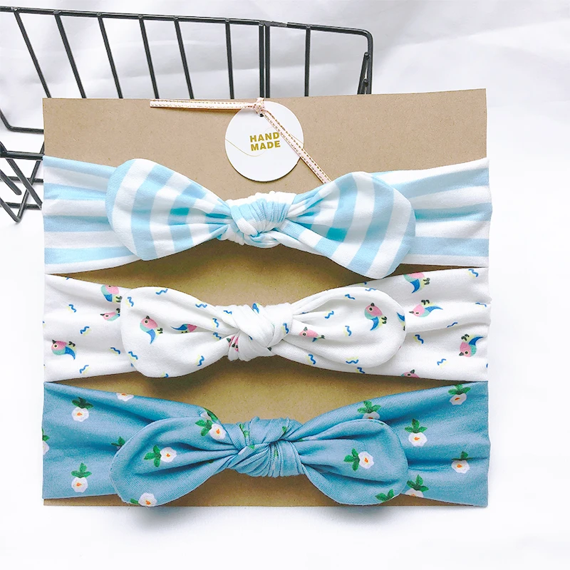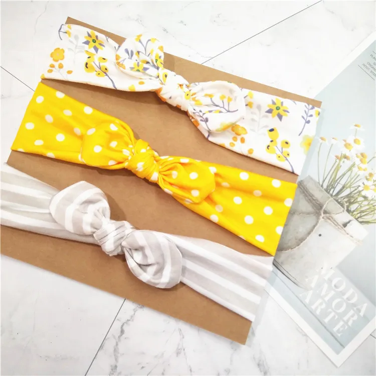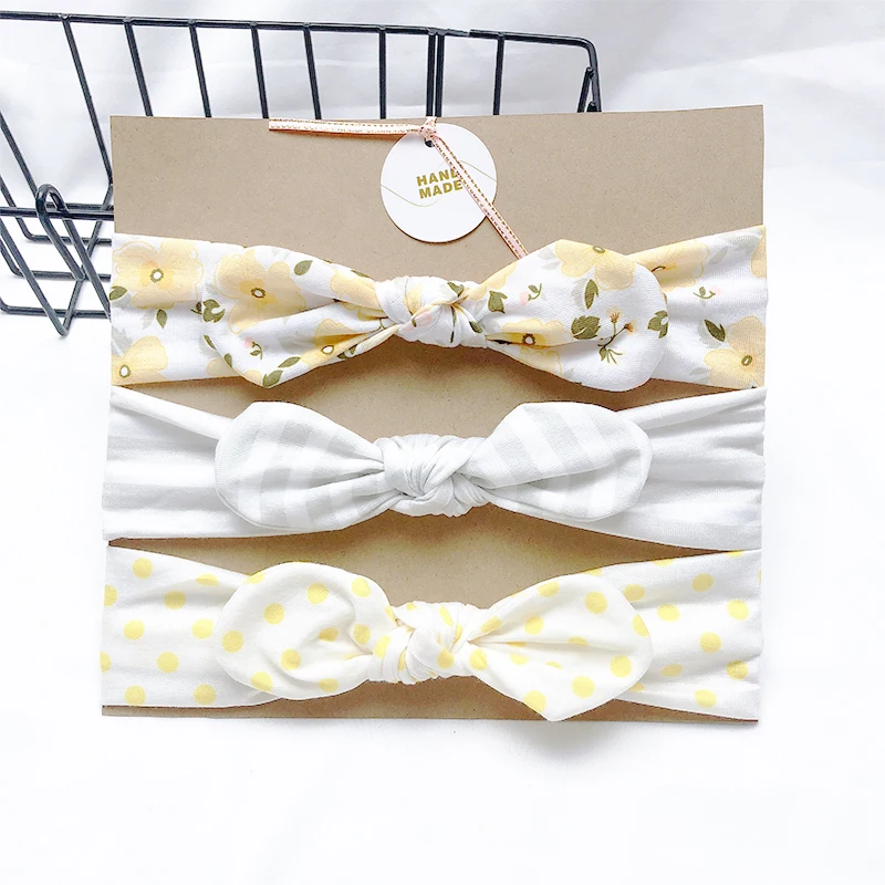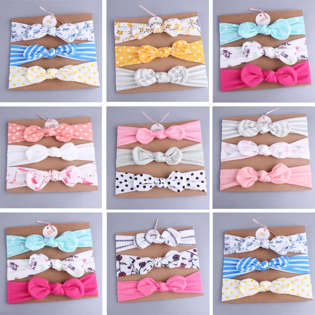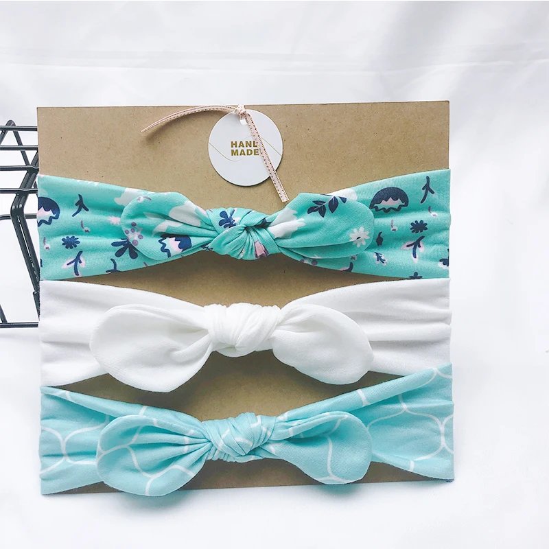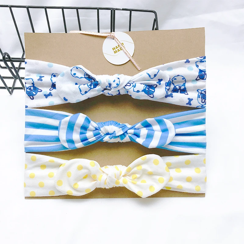 Однотонная повязка на голову с заячьими ушками для девочек, 3 шт.лот, мягкая эластичная вязаная повязка на голову, детский аксессуар для волос