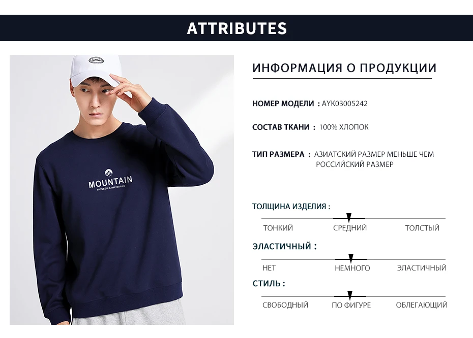 Мужская толстовка Pioneer Camp, теплая флисовая толстовка из 2021 хлопка, в классическом стиле, AYK03005242, 100%