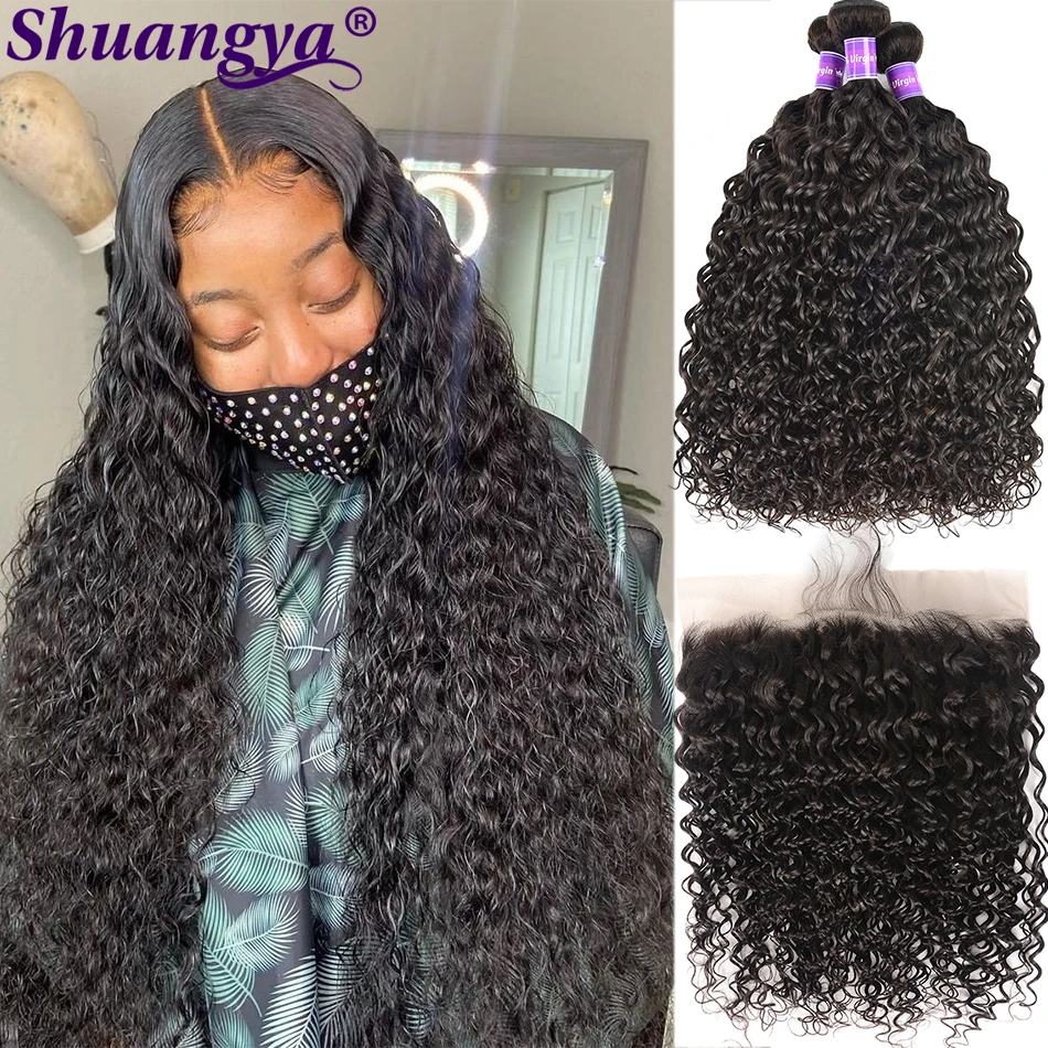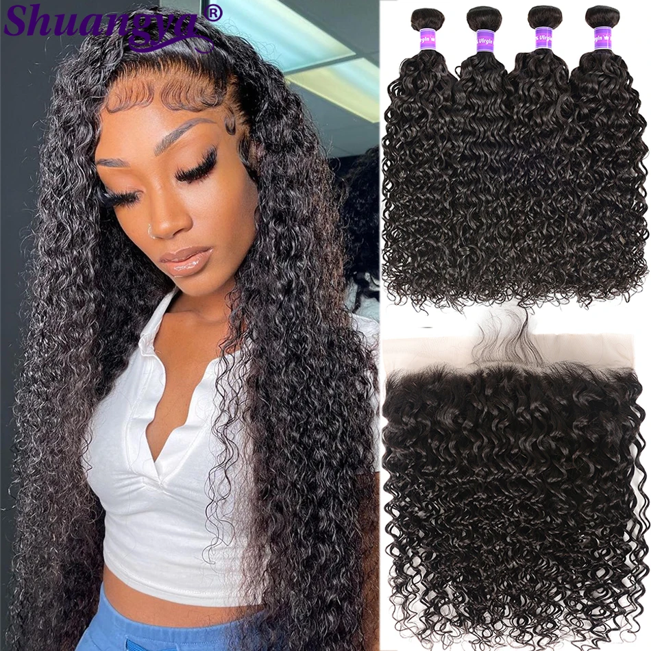 Волнистые пряди с фронтальным Remy человеческие волосы пряди с фронтальным предварительно выщипыванием перуанские волосы пряди с 13*4 фронтальным shuangya