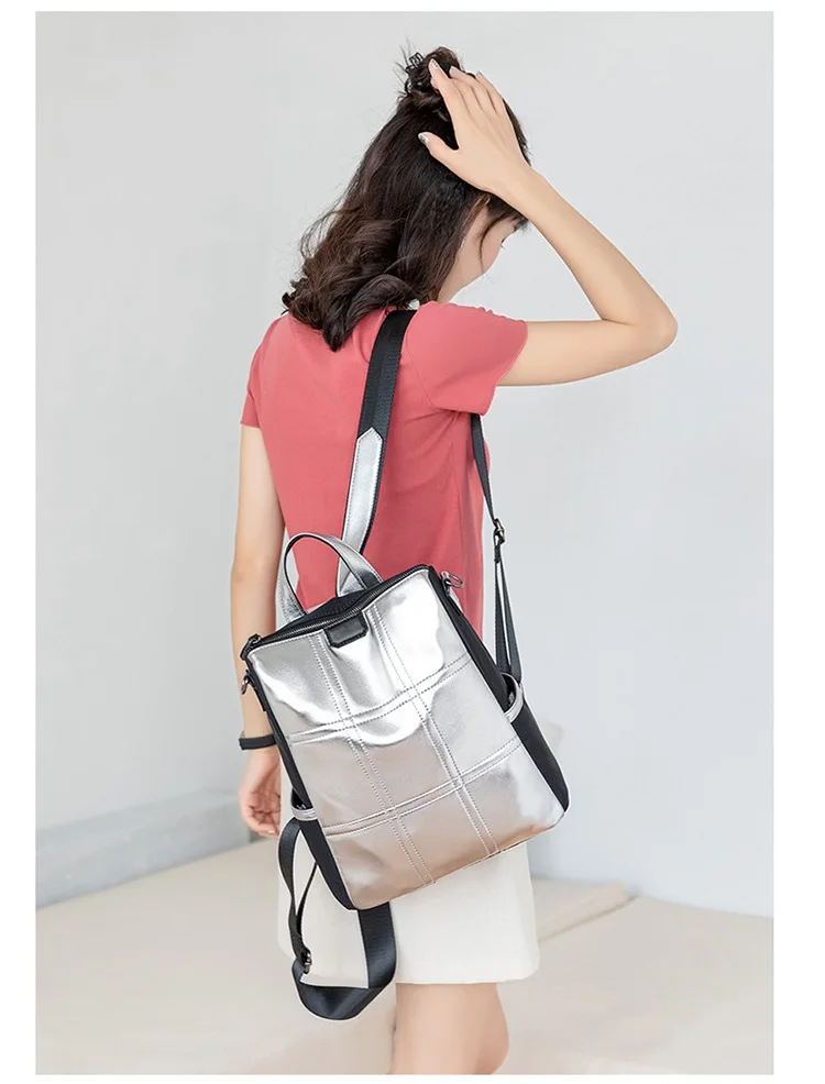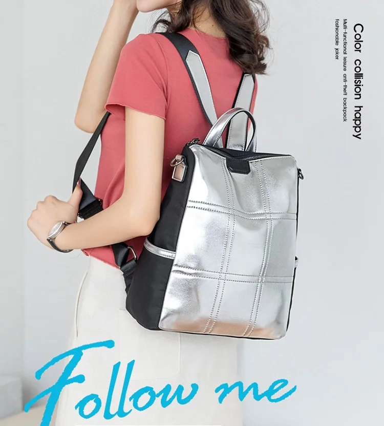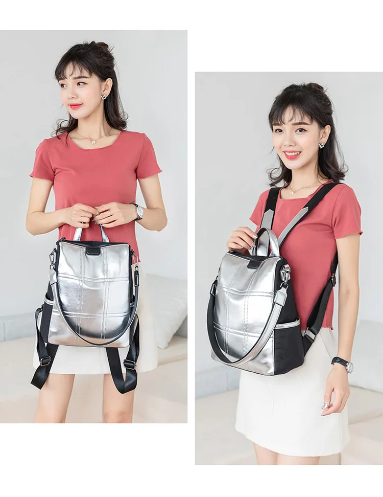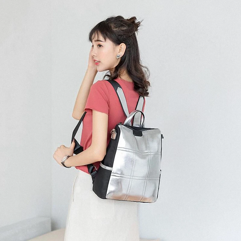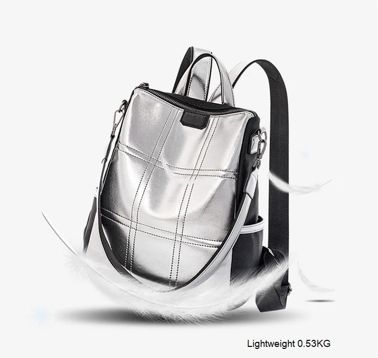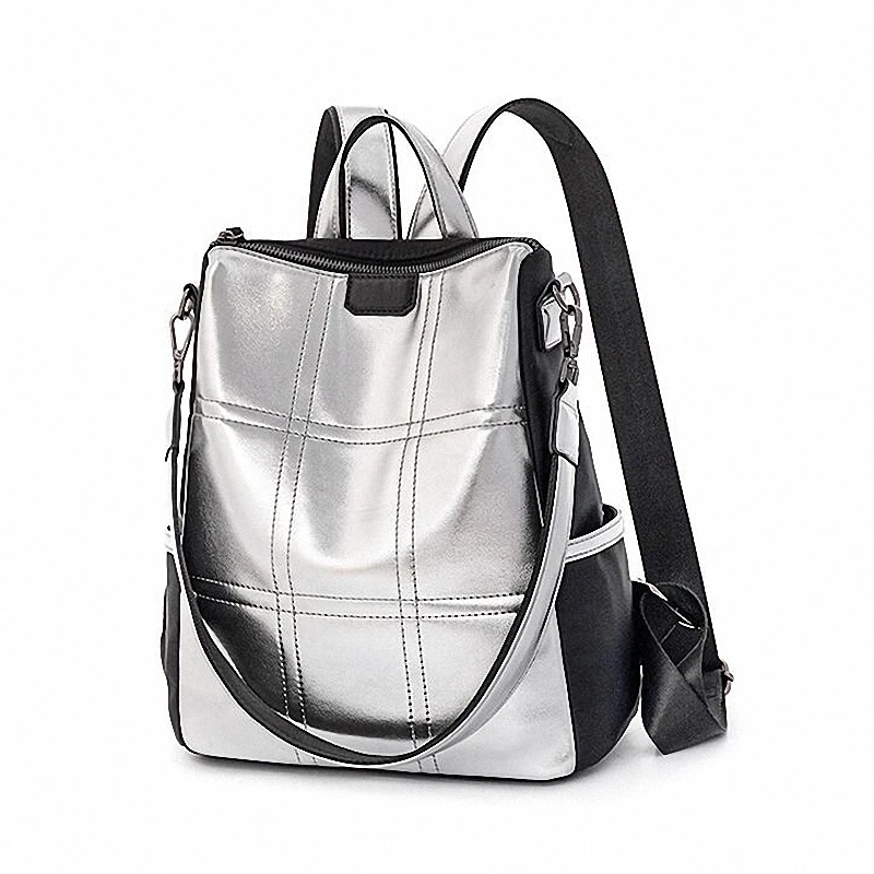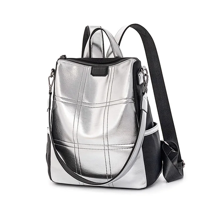 Женские кожаные рюкзаки с защитой от кражи, женский модный серебристый рюкзак для девочек, школьная сумка, дорожный рюкзак, женская сумка, рюкзак