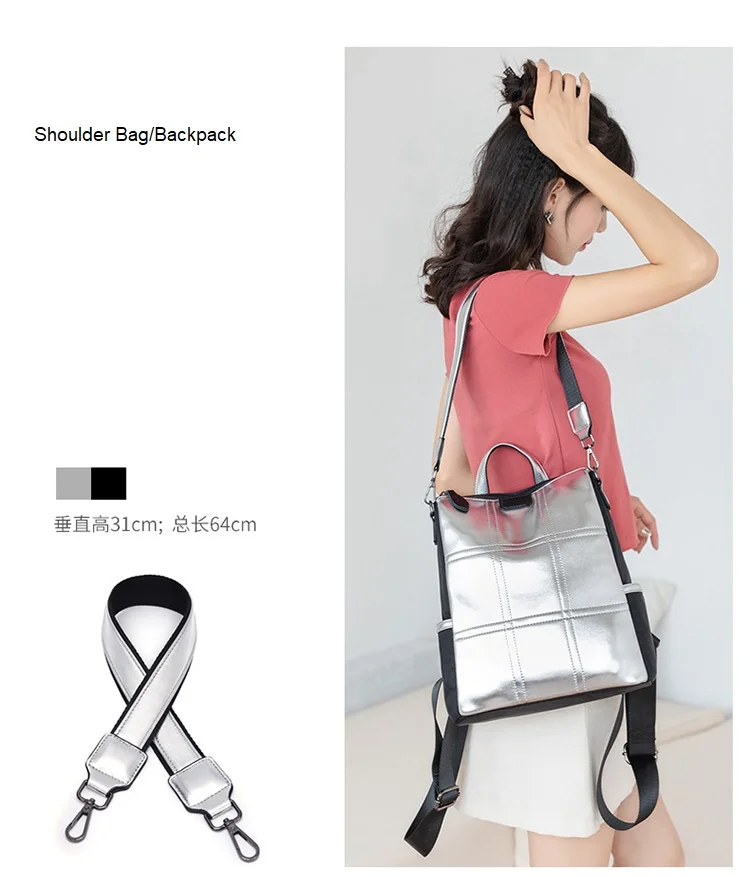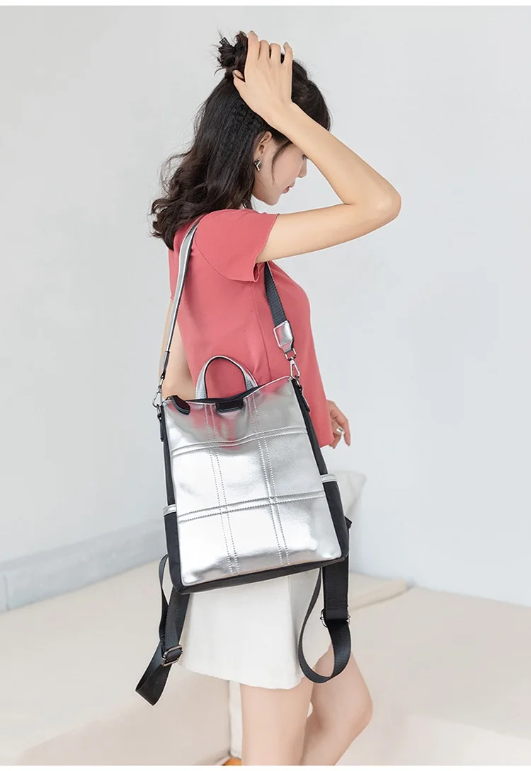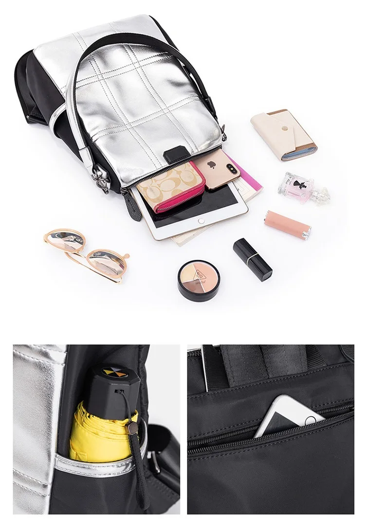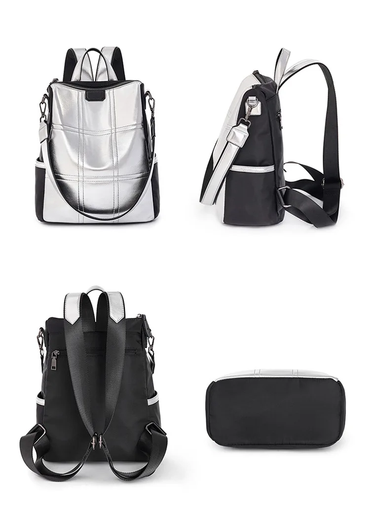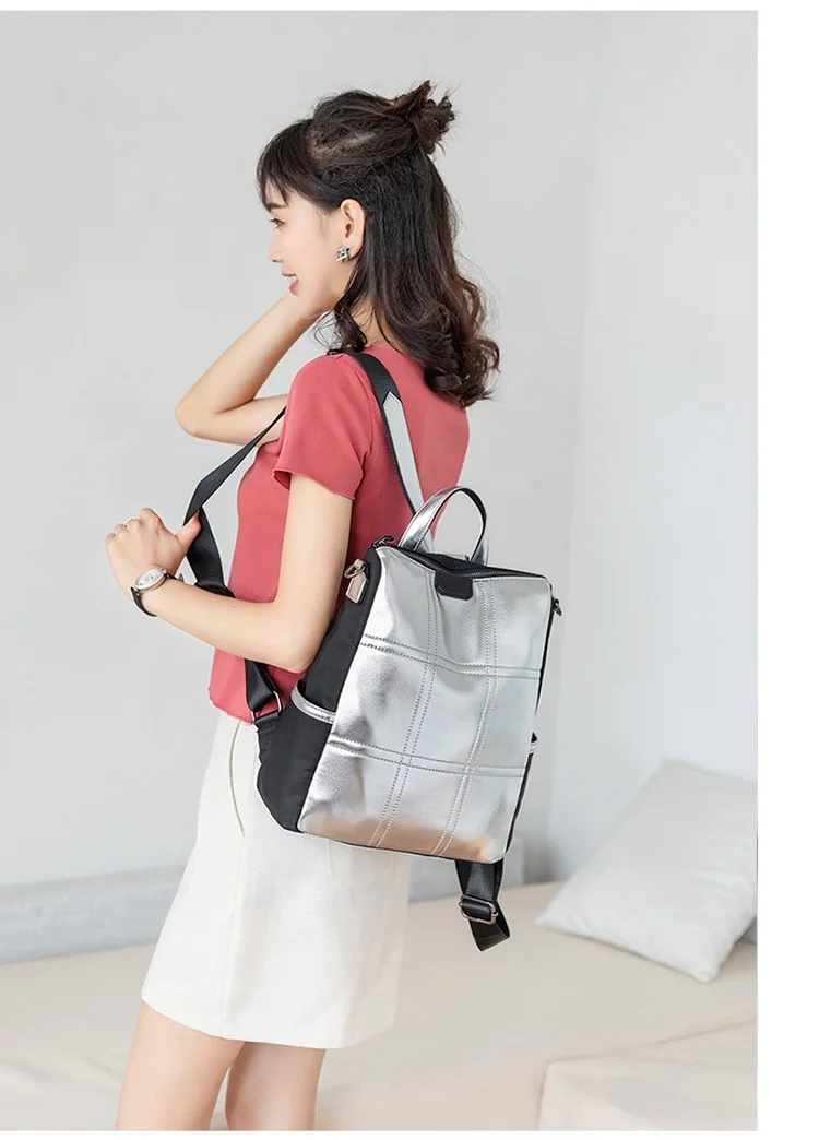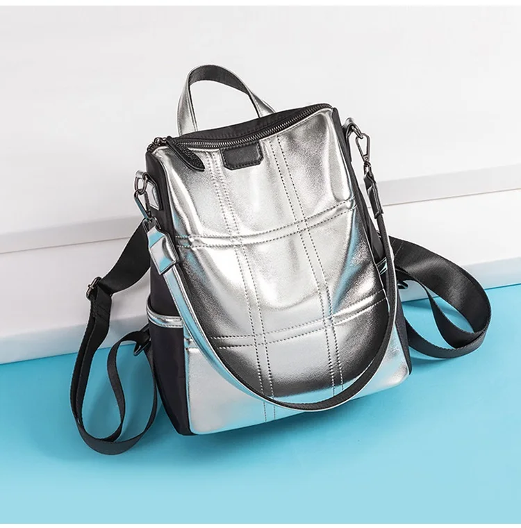 Женские кожаные рюкзаки с защитой от кражи, женский модный серебристый рюкзак для девочек, школьная сумка, дорожный рюкзак, женская сумка, рюкзак