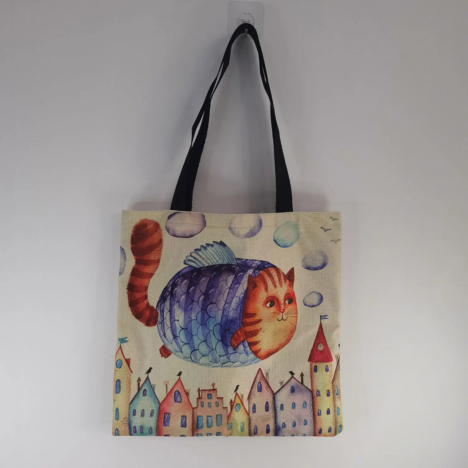 Яркие цвета ограниченная сумка через плечо для покупок Экологичные женские сумки для покупок 2020 горячая Распродажа милые Мультяшные рыбки печать как кошка сумка