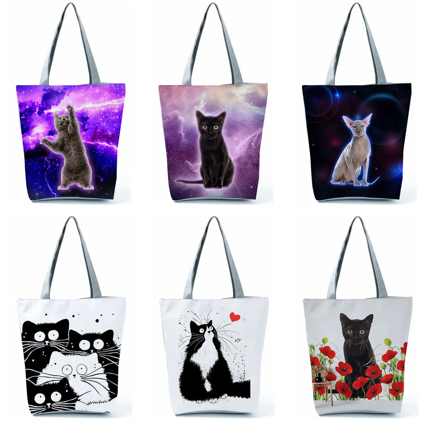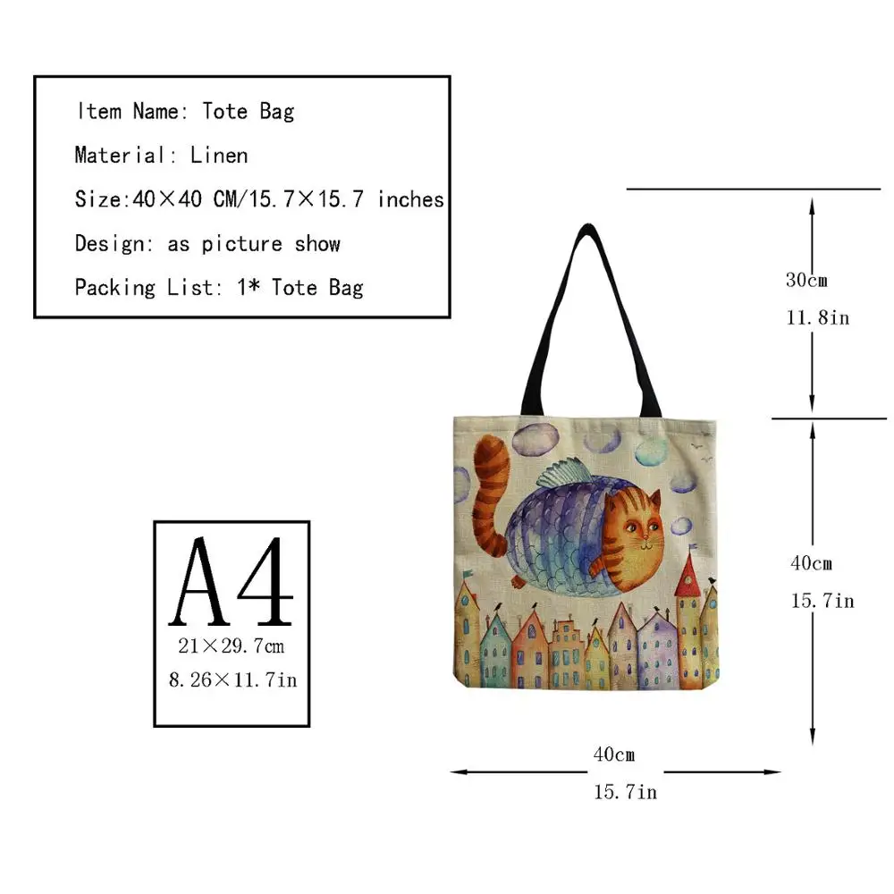 Яркие цвета, ограниченная продажа, сумка на плечо для покупок, экологичные женские сумки для покупок 2020, милая мультяшная сумка с принтом рыбы, как кошка