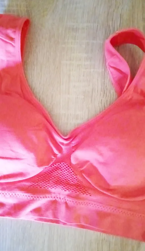 Хороший топ, не противная к телу синтетика, хл на 46 размер, чашка в. мне чуть длиноваты бретели, взяла для йоги