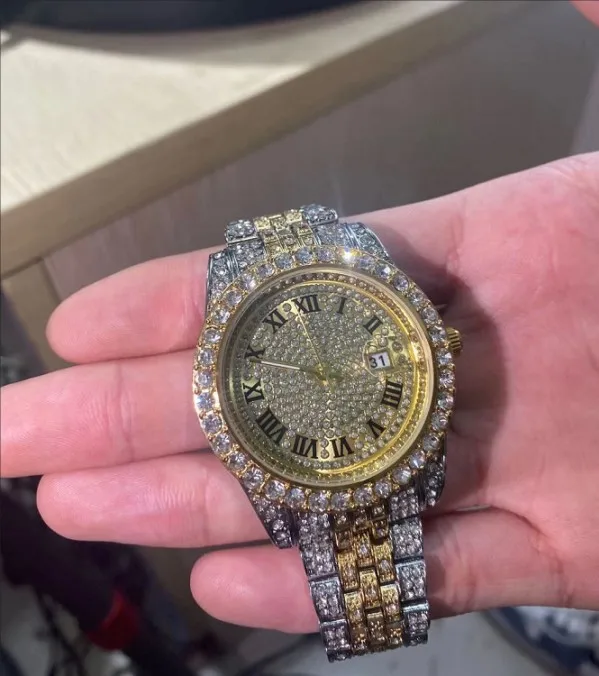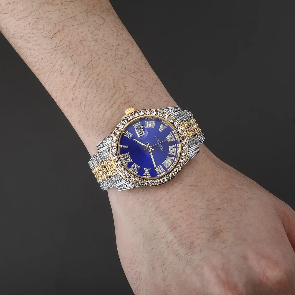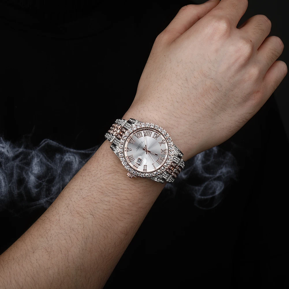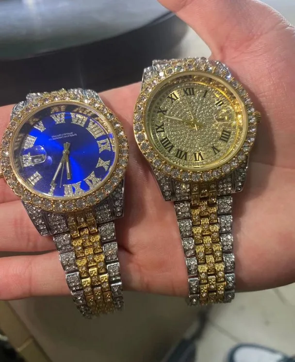 ALLICEONYOU новые часы золотого и серебряного цвета с кубическим цирконием, хип-хоп, Модный высококачественный браслет с бриллиантами из нержавеющей стали для подарка