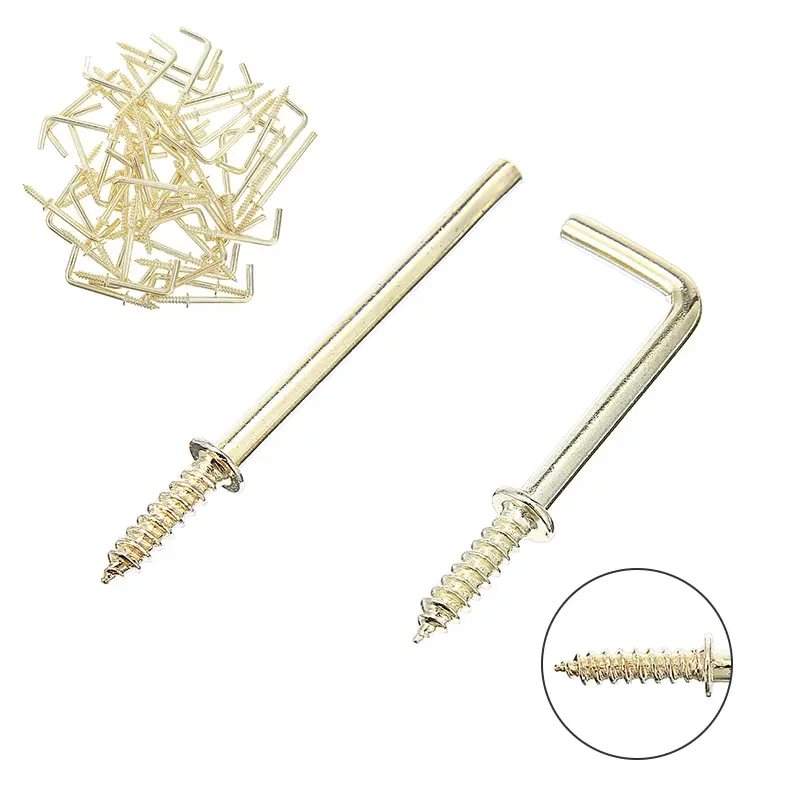 50 шт латунный прямоугольный винтовой крючок светильник крючок L-образной формы, Золотой крючок для подвешивания чашек, рубашек, винтов для фоторамки