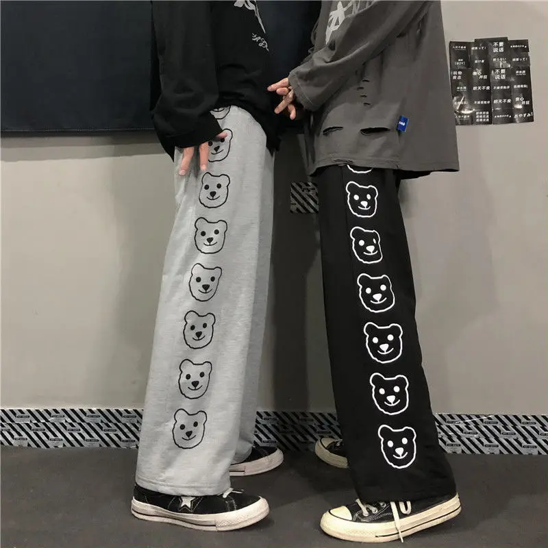 Брюки женские осенние, широкие, с мультяшным принтом, в стиле Харадзюку