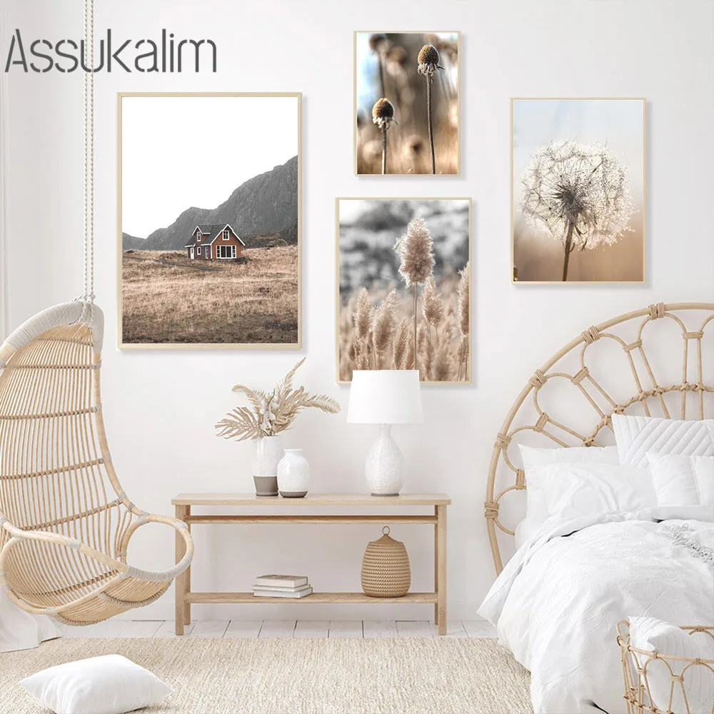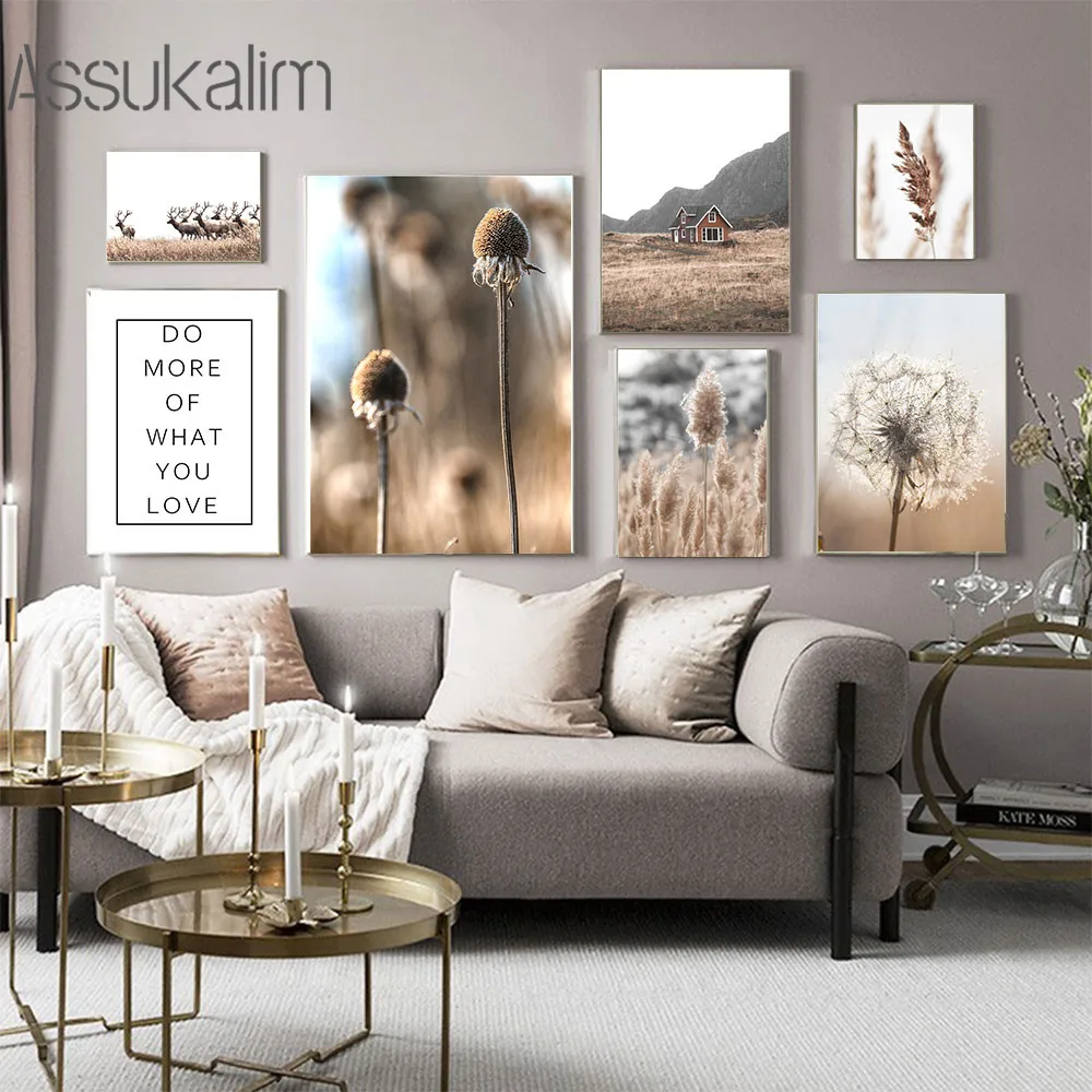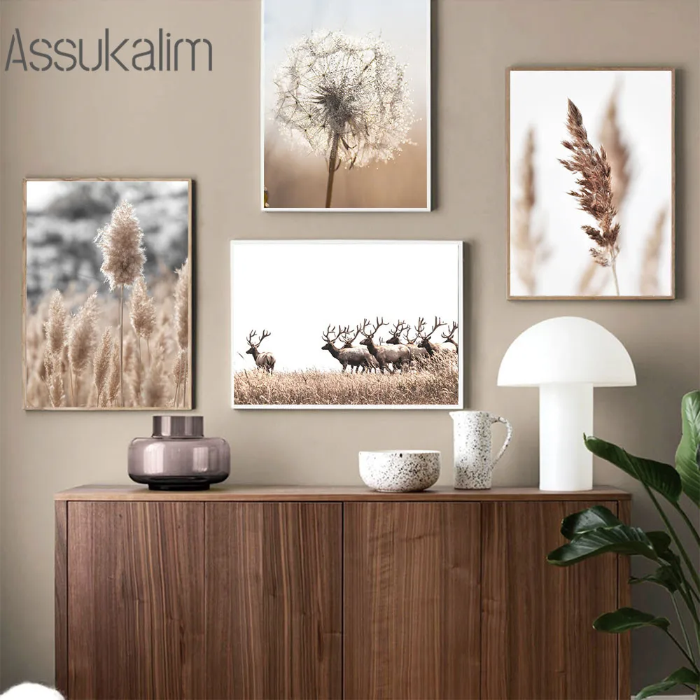 Осенний пейзаж, холст с принтом одуванчиков, рисунок тростника, постер с оленем, Скандинавская Настенная картина для украшения гостиной