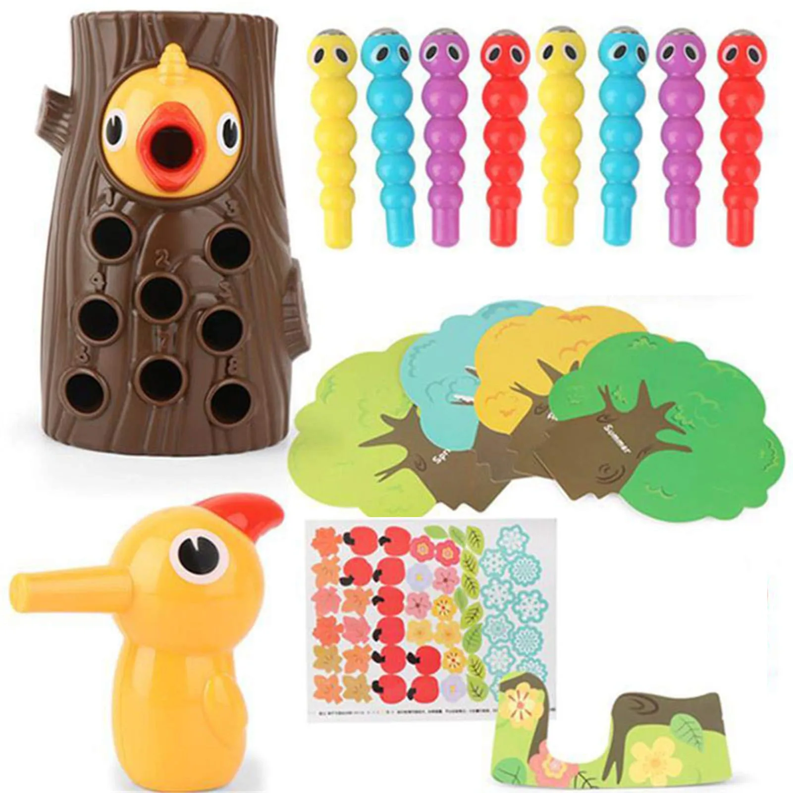 Дети дятел Рыбалка Магнитный ловить червя кормления животных семейная настольная игра Монтессори укладки развивающие игрушки Детский подарок