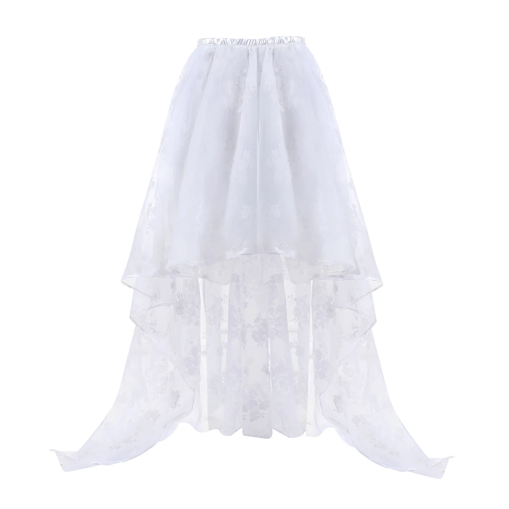 Юбка в стиле стимпанк для корсета, Женская длинная юбка для показа девушек, вечерняя Клубная одежда, винтажные костюмы бюстье-Бурлеск, аксессуары размера плюс 1. Это юбка в готическом стиле с высоким и низким дизайном, которая может удлинить ногу. 2. Многослойная сетка из органзы предназначена для того, чтобы сделать ее более оборкой и стереоскопичной. Ваши красивые ноги будут более стройными, если вы носите эту юбку и высокий каблук. 3. Более того, черная органза с вышитым цветочным узором улучшает изящный внешний вид юбки. Гибкая эластичная резинка на талии поможет вам легко носить или снимать. 4. Асимметричный Подол-один из классических модных элементов, эта юбка никогда не выйдет из моды и подойдет для любых вечеринок и случаев, таких как Танцевальное представление, клуб, показ мод и так далее.