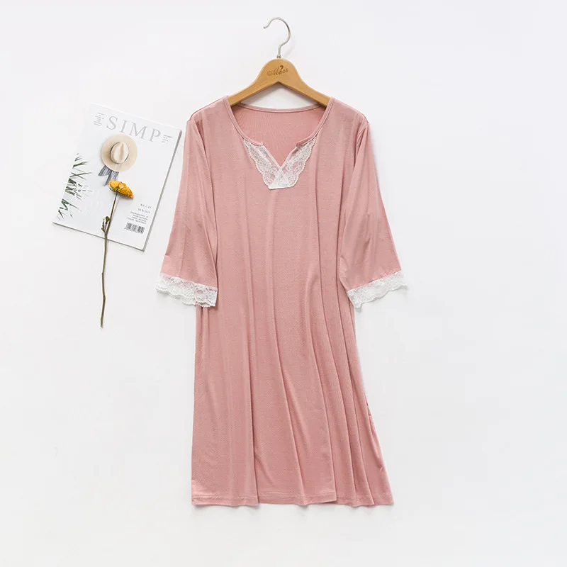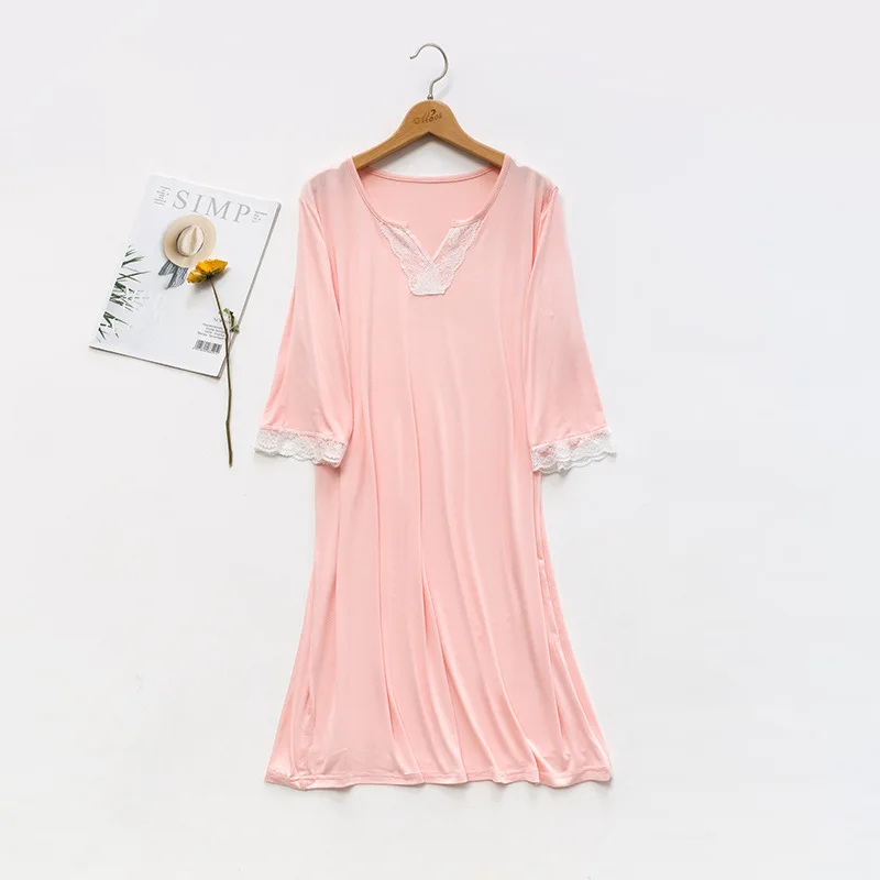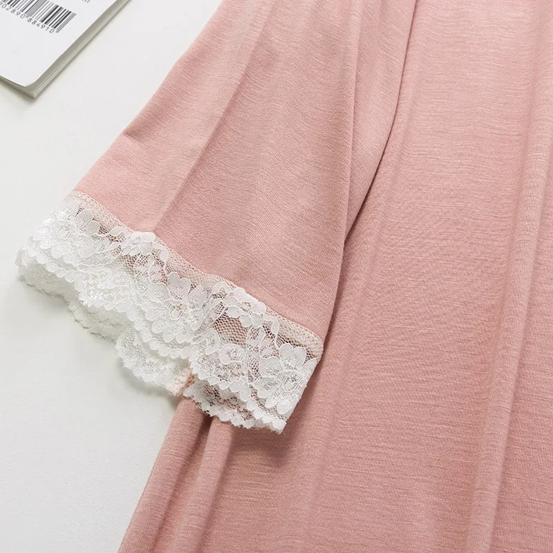 Ночная рубашка женская из хлопка, с коротким рукавом, кружевом, V-образным вырезом, свободная, пушистая, розовая, платье для сна, ночные сорочки