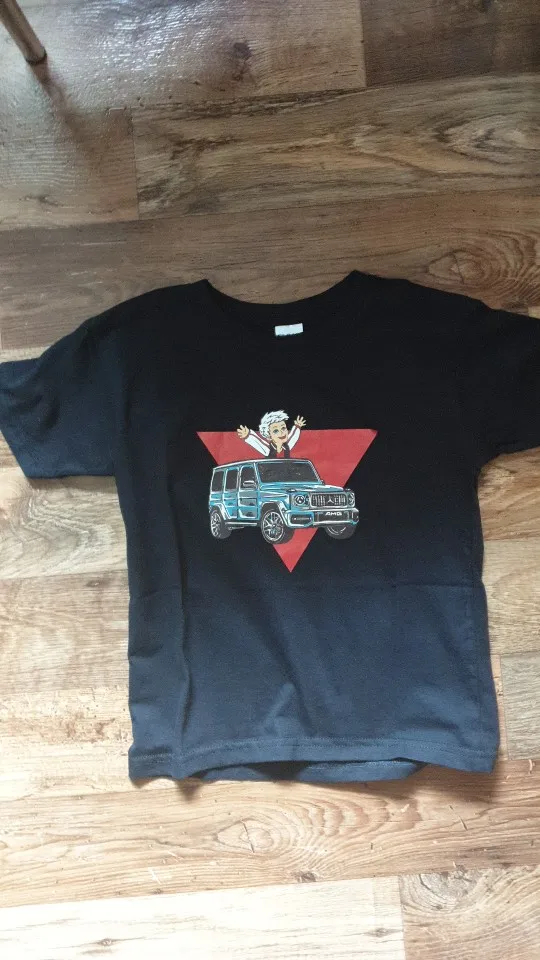 Футболка классная, уже вторая у нас. Ребёнок только сказал, что машина должна быть чёрная, расстроился, но потом смирился. Сделайте чёрный гелик.