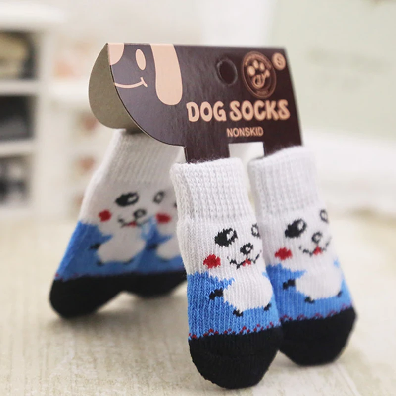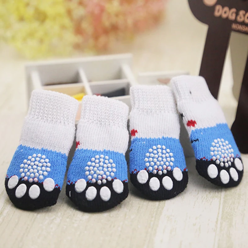 4 шт./компл., милые вязаные носки для щенков и собак хлопковые носки для маленьких собак нескользящая обувь с кошками, осенне-зимняя Домашняя одежда защита от лап