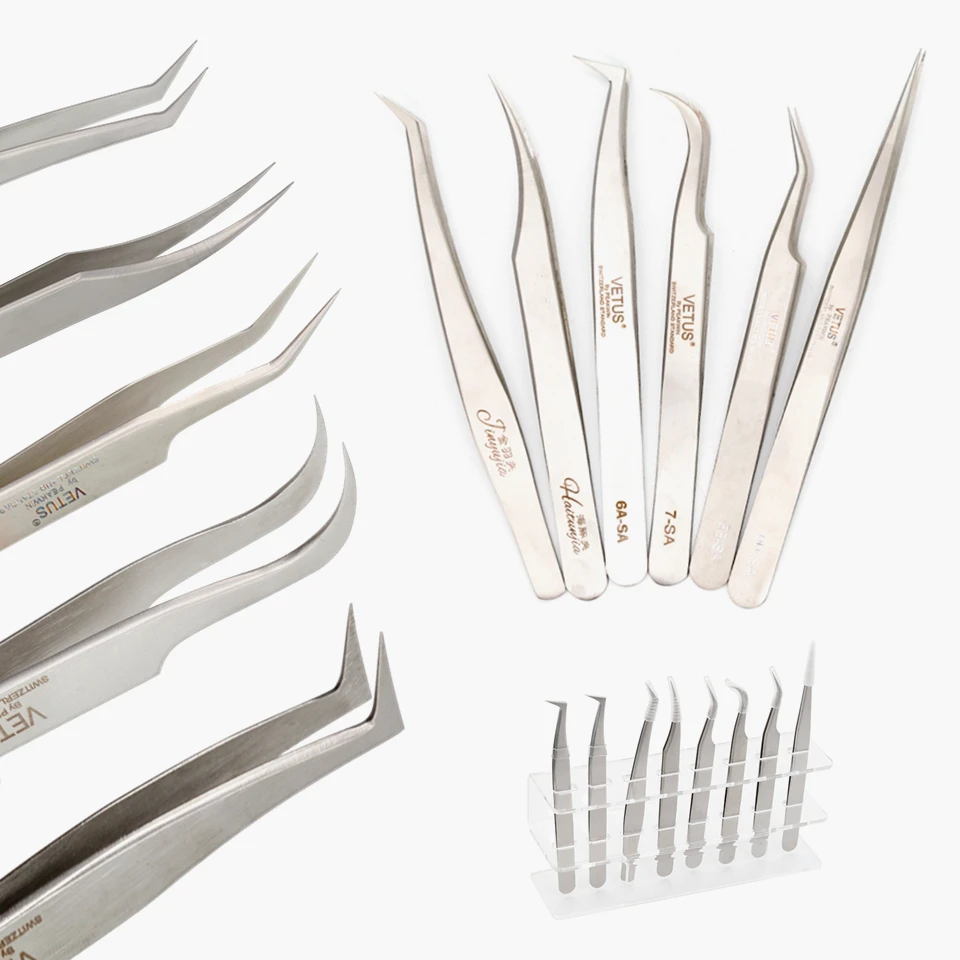 AGUUD русский Пинцет для объемных ресниц наращивание ресниц прямой и Изогнутый пинцет из нержавеющей стали макияж Ложные ресницы Пинцет стенд