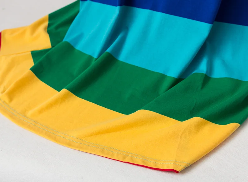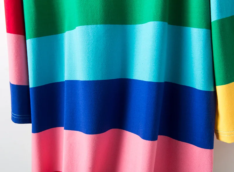 Женская Длинная Ночная рубашка в радужную полоску, один размер, свободная удобная юбка, милая Домашняя одежда с круглым вырезом, на весну и осень