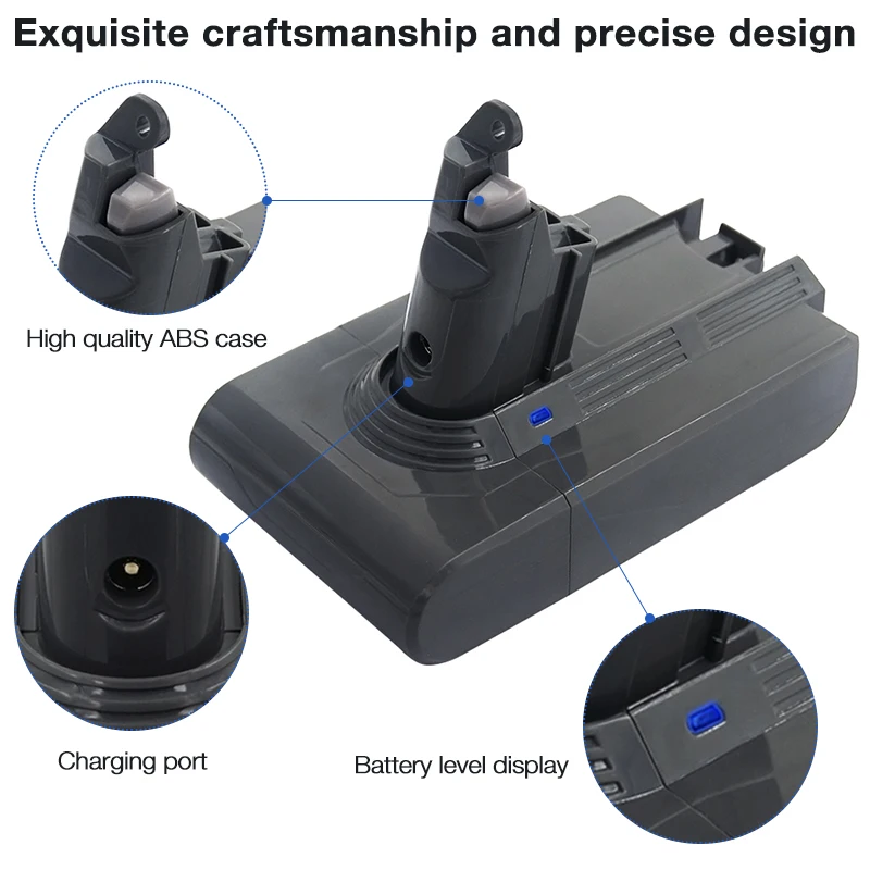 Характеристики:Состояние: 100% Новый Сменный аккумуляторТовар: батарея для пылесоса серии Dyson V6Клетки:ПремиумЯчейки SonyНапряжение: 21,6 вЕмкость: 3000 мАч/3600 мАч/4000 мАч Идеально подходит для серии Dyson V6 EPC умная плата защиты батареи.Встроенная защита от перезарядки, разрядки и короткого замыкания. Выключите зарядное устройство во время полной зарядки аккумулятора, чтобы сохранить длительный срок службы батареи. Заменить на оригинальные батареи:965874-02204720-01209432-01209472-01209476-01209560-01210691-01210692-01 Совместимые модели:Dyson DC58 DC59 DC61 DC74 DC72 V6 DC62 DC62 animal965874-02