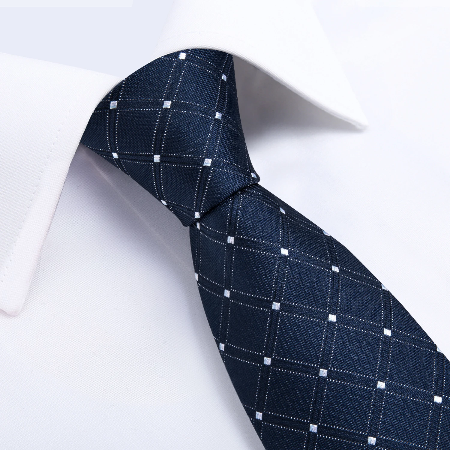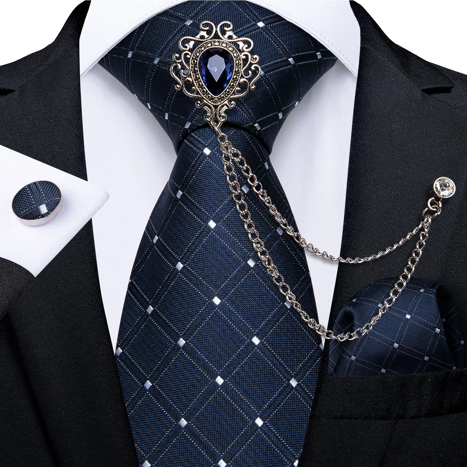 8 см темно-синий мужской шелковый галстук в клетку и горошек деловой Свадебный галстук платок с роскошной брошью со стразами Мужской подарочный галстук DiBanGu