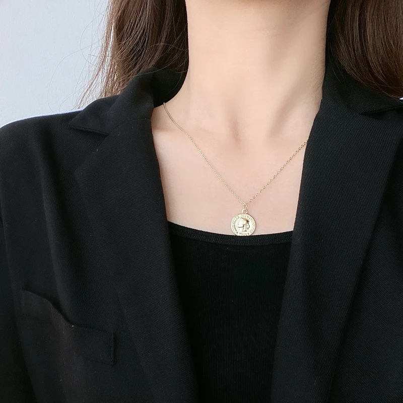 Простое ожерелье с подвеской в виде монеты для студентов, новое модное металлическое короткое ожерелье для женщин, ювелирные изделия в подарок, ювелирные изделия в стиле панк и готика, 376