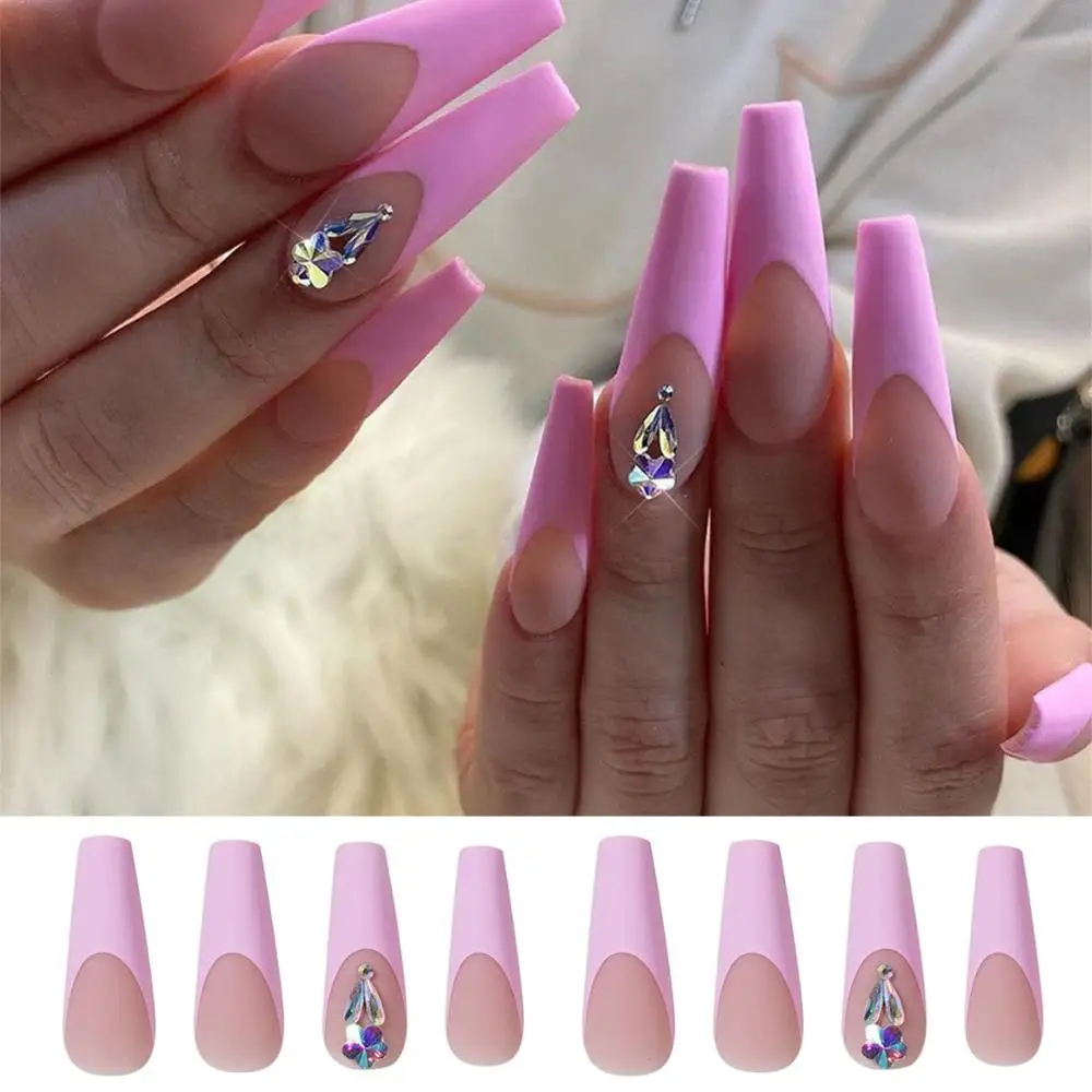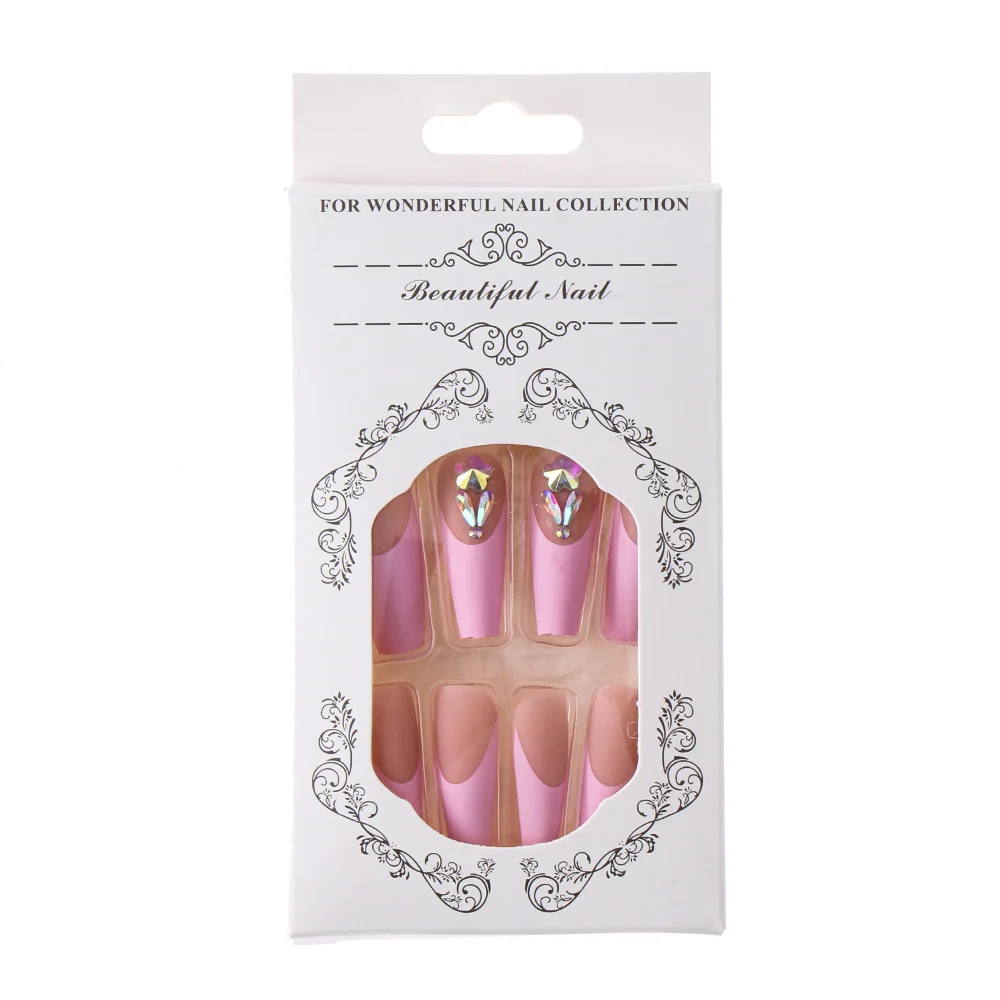 100% новый товар высокого качества. Материал изделия: ABS Цвет изделия: розовый простой в использовании подходит для использования с гелем, акрилом или стекловолокном. Посылка: 24 шт./кор. накладные ногти + пресс-клей