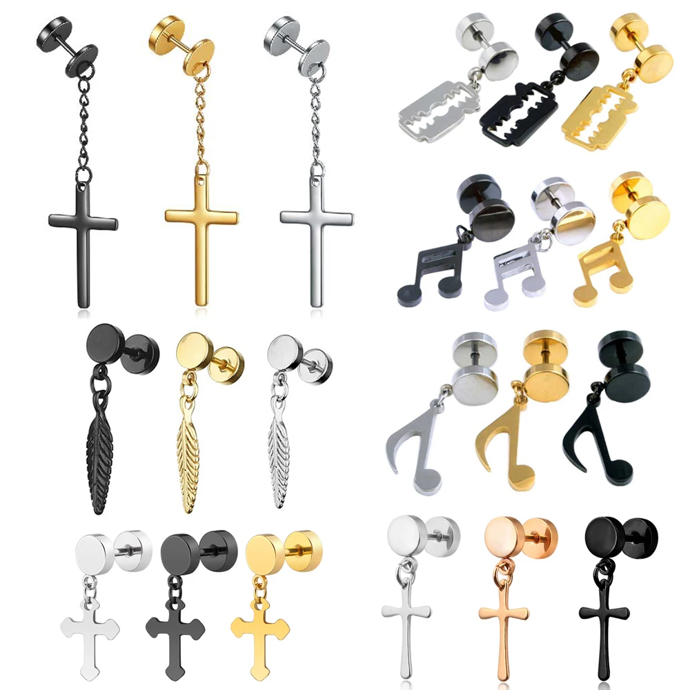 1 шт, в стиле панк, готика, нержавеющая сталь серьги-гвоздики в форме Кресталезвиелист имитации круглого ухо с коническим отверстием для гимнастического заламодные женские и мужские рок ювелирные изделия