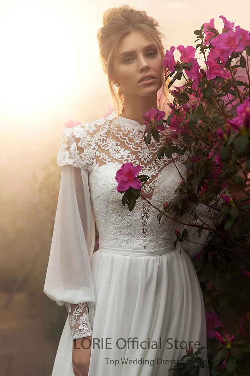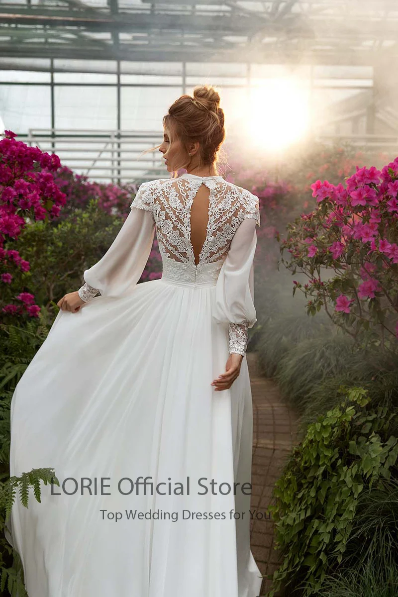 LORIE арабское свадебное платье с длинным пышным рукавом, кружевные богемные Свадебные платья с аппликацией, шифоновое платье в стиле бохо 2020