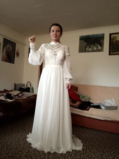 Самое красивое свадебное платье. Красивый материал, красиво сделано. Идеально подходит❤Отличный сервис, очень хорошее общение, очень быстрая доставка. Wybralam Размер 8 и wyslolam мои размеры для переделки. Идеально подошло! Спасибо!❤②