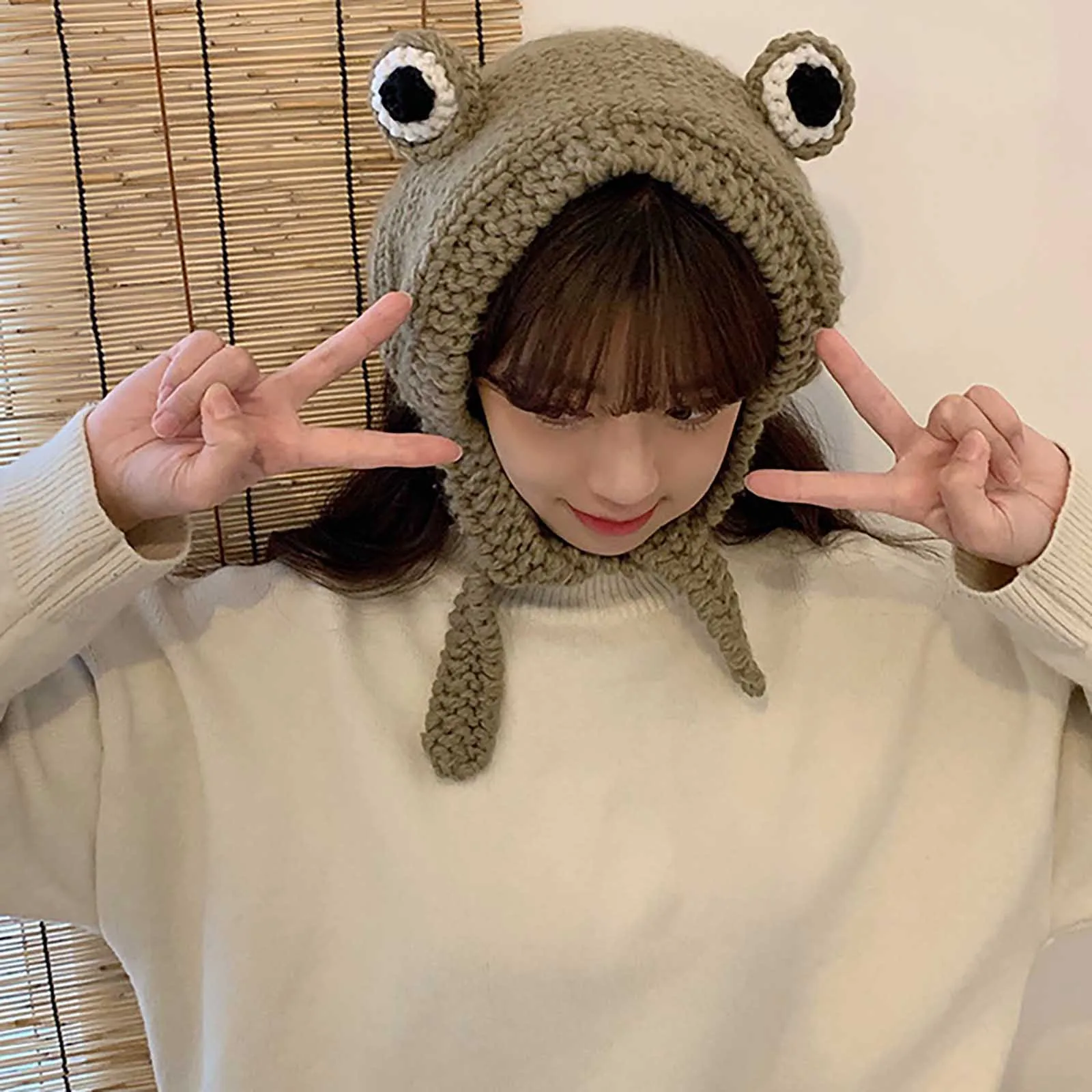Вязаная шапка лягушка модная шапка зимняя женская Корейская женская вязаная шапка с животными вязаные шапки вязаная шапка для фотосъемки
