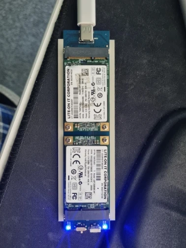 Прибыл через 13 дней. Работает, но становится очень жарко! Не уверен, как два SSD внутри прослужит с этим экстремальным нагревом.