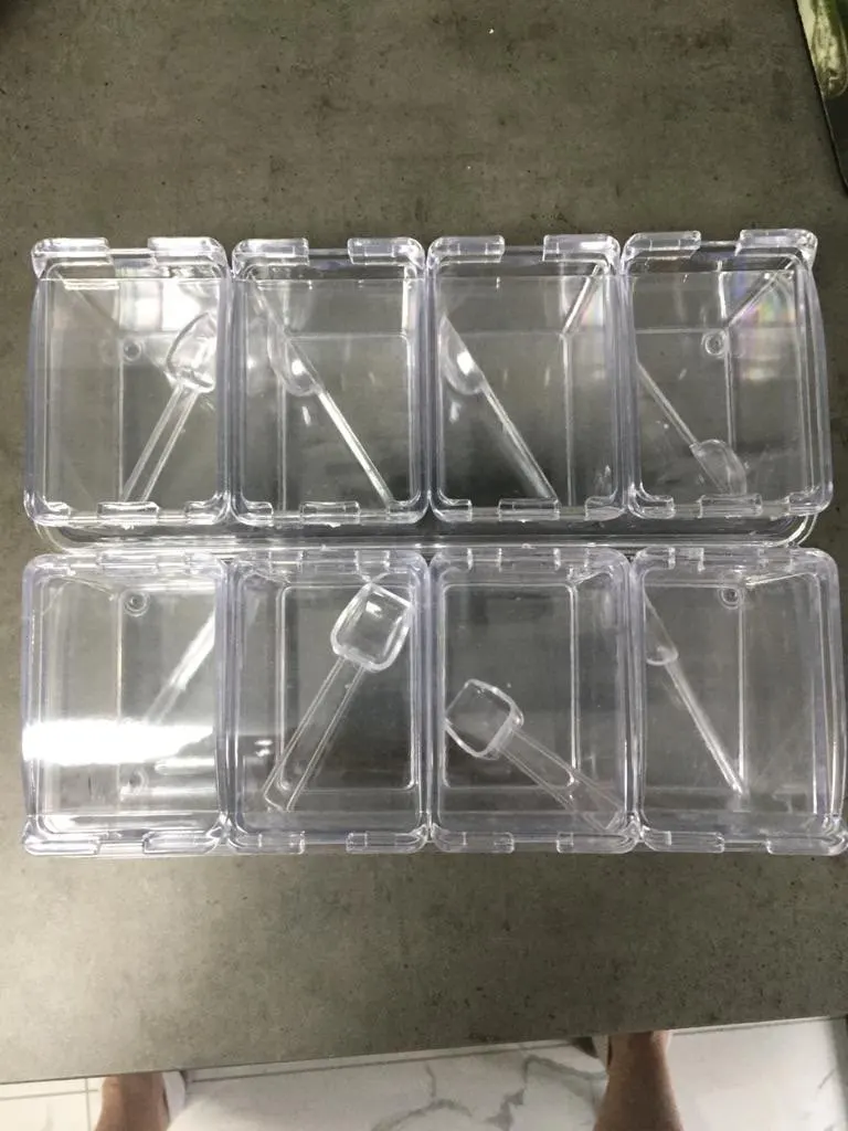 Кухонные принадлежности прозрачная приправа коробка четыре сетки приправа коробка четыре в одном с ложкой приправа банка набор, лучшие в коробке приправы, простой прозрачный цвет, минималистский стиль до крайности. Прозрачный материал простой и простой. Уплотнение хорошее, и нет беспокойства о безопасности приправ. Четыре комбинации, больше вариантов, для ваших потребностей в приготовлении пищи. Каждая маленькая коробка поставляется с маленькой ложкой, которая облегчает измерение в любое время.