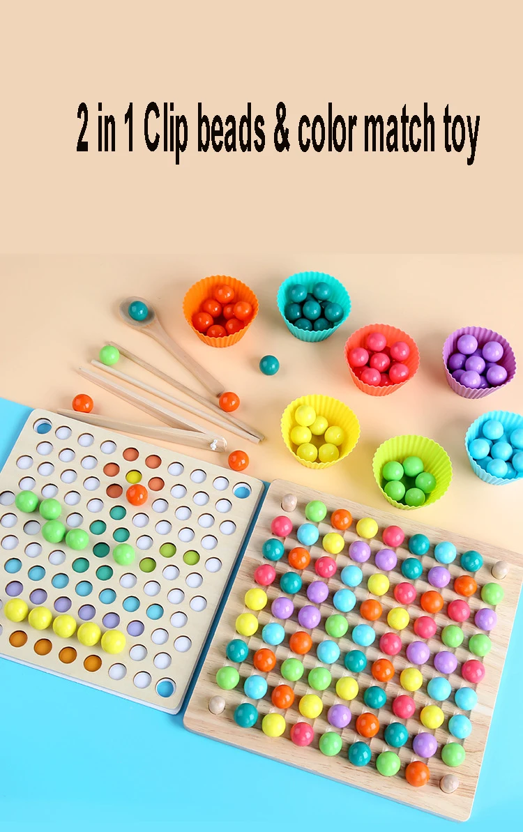 Деревянные игрушки Монтессори для детей 3 лет, бусины-зажимы, сочетаются с цветами, раннее образование, пазлы для маленьких мальчиков и девочек
