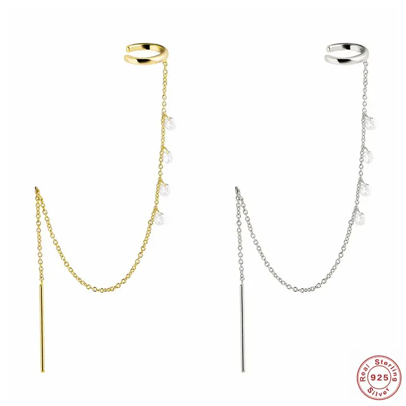 S925 серебряные европейские серьги-гвоздики, цепочка для женщин и девушек, вечерние ювелирные украшения, 1 шт., хип-хоп готический панк CZ, наручная цепочка, серьги