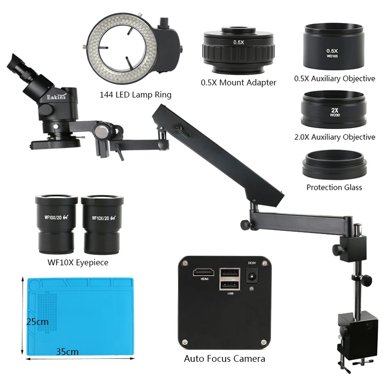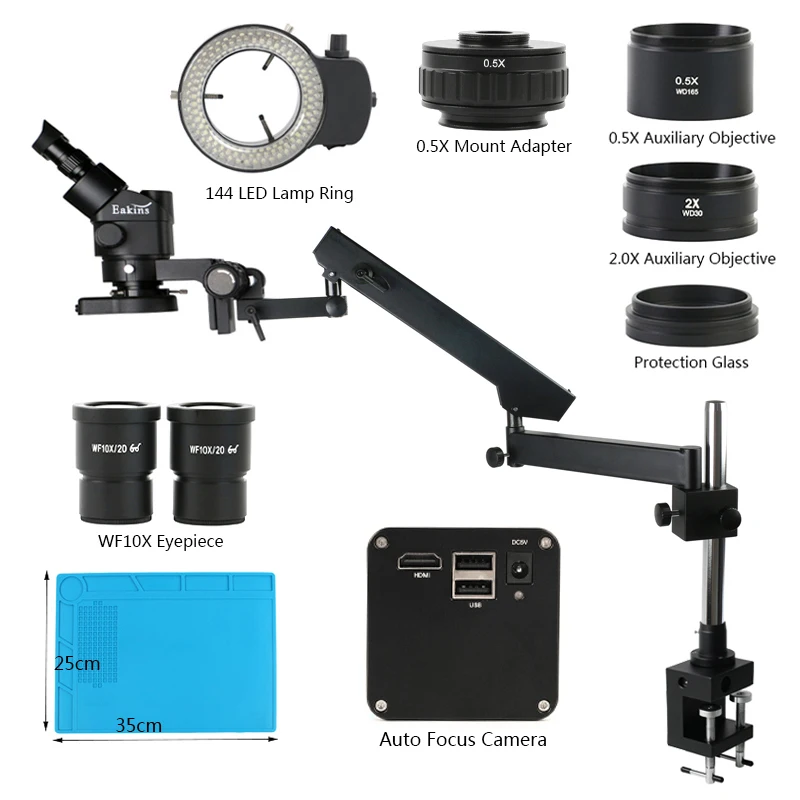 Тринокулярный стереомикроскоп, 3,5x-90X Simul, с шарнирным рычагом, с зажимом SONY IMX290 HDMI, с автофокусом, с линзой Барлоу 0,5x, 2X