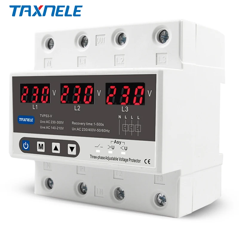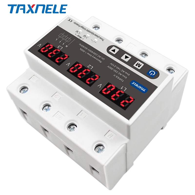 Трехфазное регулируемое устройство защиты от перенапряжения 3-фазное автоматическое восстановление защитное устройство сброс 63 а 380 В