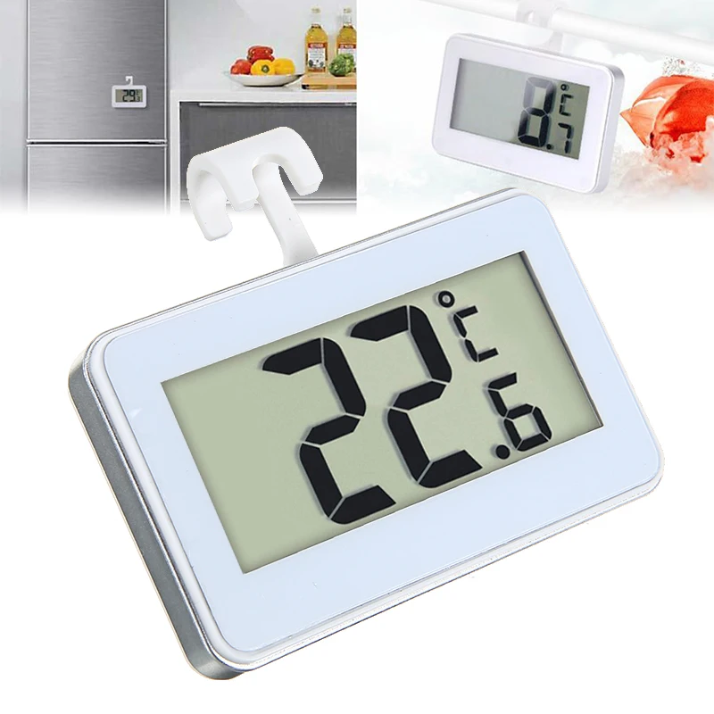 Цифровой мини-термометр с магнитным крючком, водонепроницаемый, большой экран, регулируемая подставка для холодильника, морозильника, холодильника