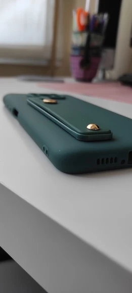 С чехлом всё хорошо. Отличается только оттенок (у продавца он светлее и ярче, чем в реальности). Фото пыталась сделать, но нужный оттенок поймать не смогла. Держатель клеить не стала, т.к. его достаточно трудно вытягивать (я бы даже сказала, не очень удобно). Плюс есть подозрение, что он будет выпирать сильнее камеры, из-за чего телефон не сможет ровно лежать на поверхности.