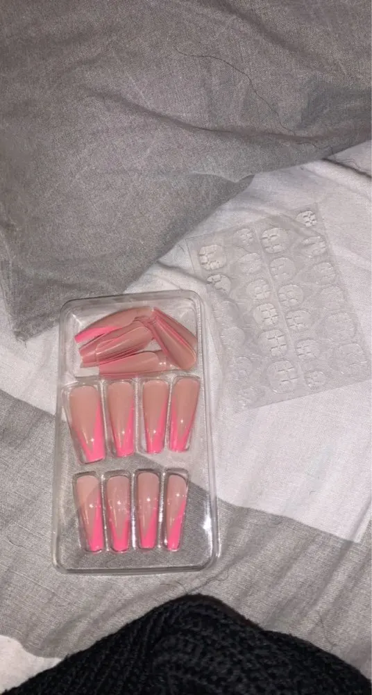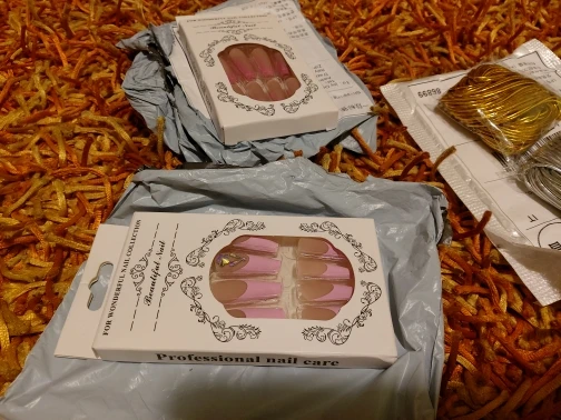 доставка быстрая) с продавцом не общалась) с ногтями идут хлипкие наклейки) ногти длинен чем казалось, практически прозрачные...