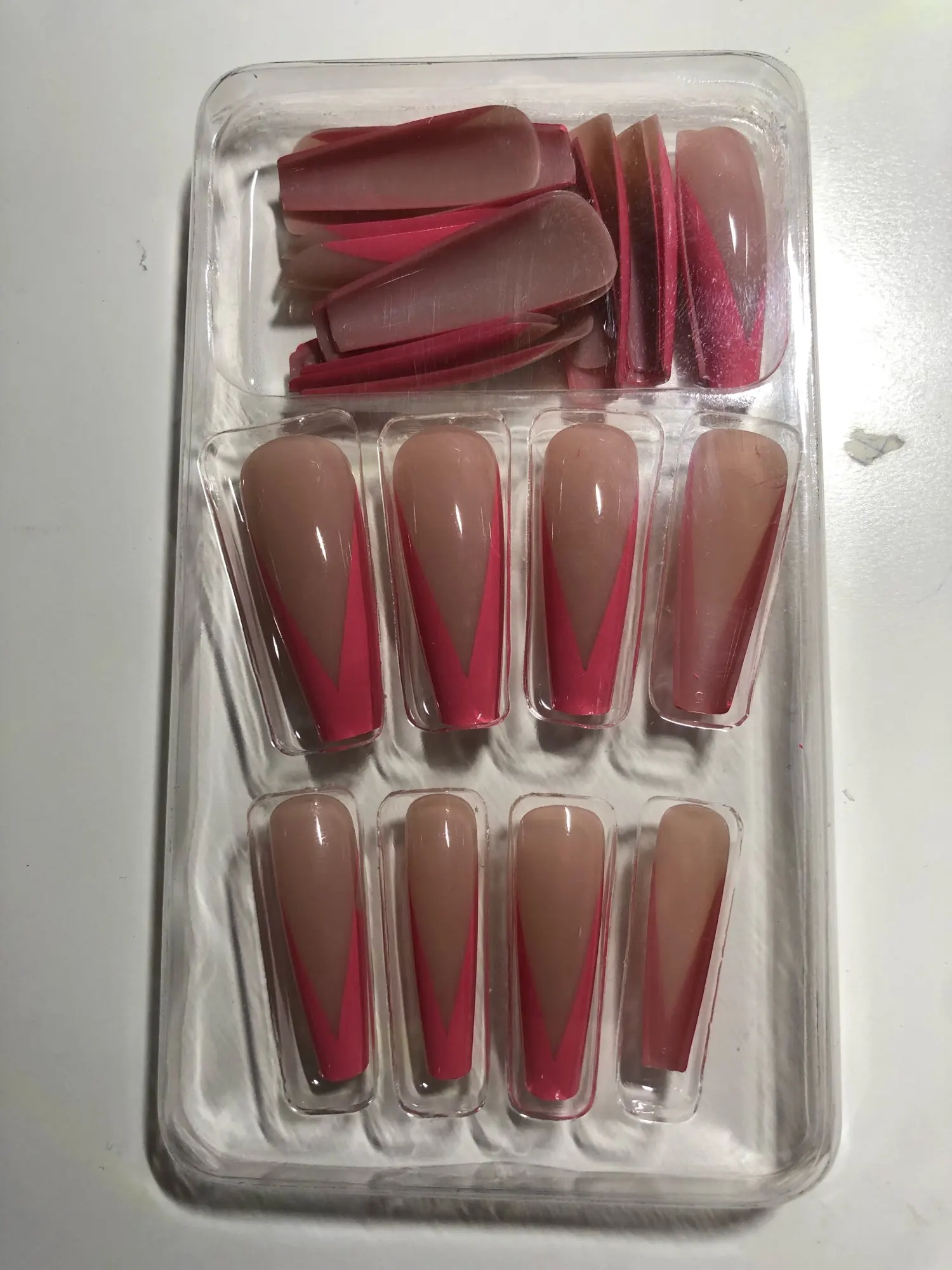 100% новый товар высокого качества.Материал изделия: АБС-пластикЦвет изделия: розовыйЛегко использоватьПодходит для использования с гелем, акрилом или стекловолокном.Посылка входит:24 шт./кор. накладные ногти + пресс-клейИлиРозовые 24 шт. без коробки без клея