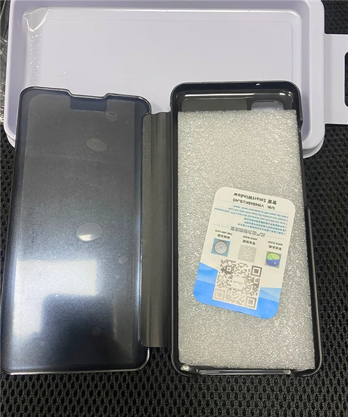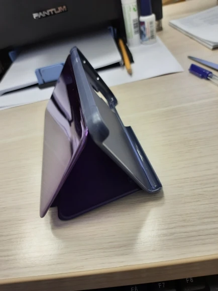 Чехол подошёл. Поверхность крышки зеркальная, хорошо видно экран телефона. Можно удобно сложить, телефон держится устойчиво. Товар шел приблизительно 3 недели. На боковой поверхности имеется небольшой дефект. За такую цену качество приемлемое. К покупке рекомендую.