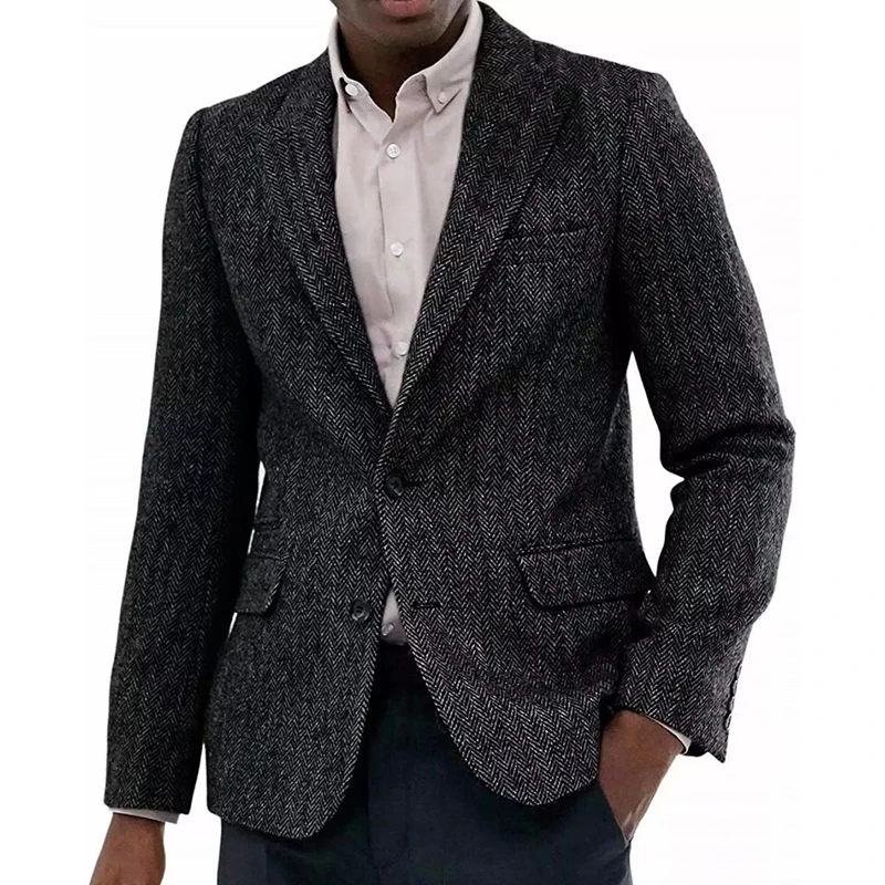 Мужская твидовая куртка на заказ, серое Мужское пальто в елочку, му...
