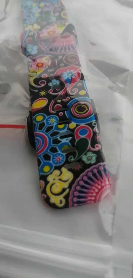 Покупал 11.11, доставили по Почте России в ближнее Подмосковье в течение месяца в одном пакете с другими 5-ю покупками из Китая. Брал для жены, так как ей очень понравился принт. Обошёлся в 262 рубля, в т.ч. доставка 31 руб. Сразу же заменил жене оригинальный браслет. Ей очень понравился внешне и тактильно. Лично мне кажется, что цена завышена, так как принт не самого высокого качества (чувствуется тактильно шероховатость). Надеюсь, что это только кажется. Дополню отзыв, если начнёт осыпаться. Силиконовый ремешок не того же качества, что у оригинального (хуже, как по мне, но запахов не имеет). Все остальное в соответствии с описанием. Пока, кроме стоимости, всем доволен. Дополню отзыв в дальнейшем. Продавцу спасибо за отзывчивость и все ответы, а также за надёжную упаковку.