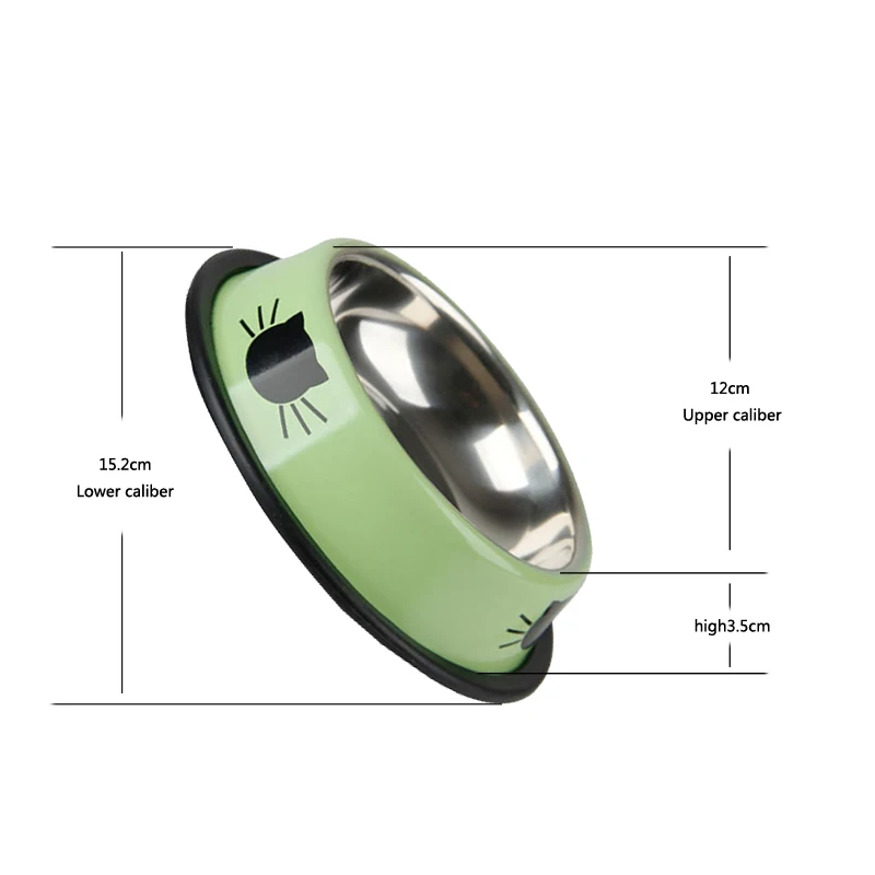 Миска для кошек из нержавеющей стали, многоцветная миска для еды с рисунком кота из мультфильма и широким горлышком с нескользящей устойчивой основой